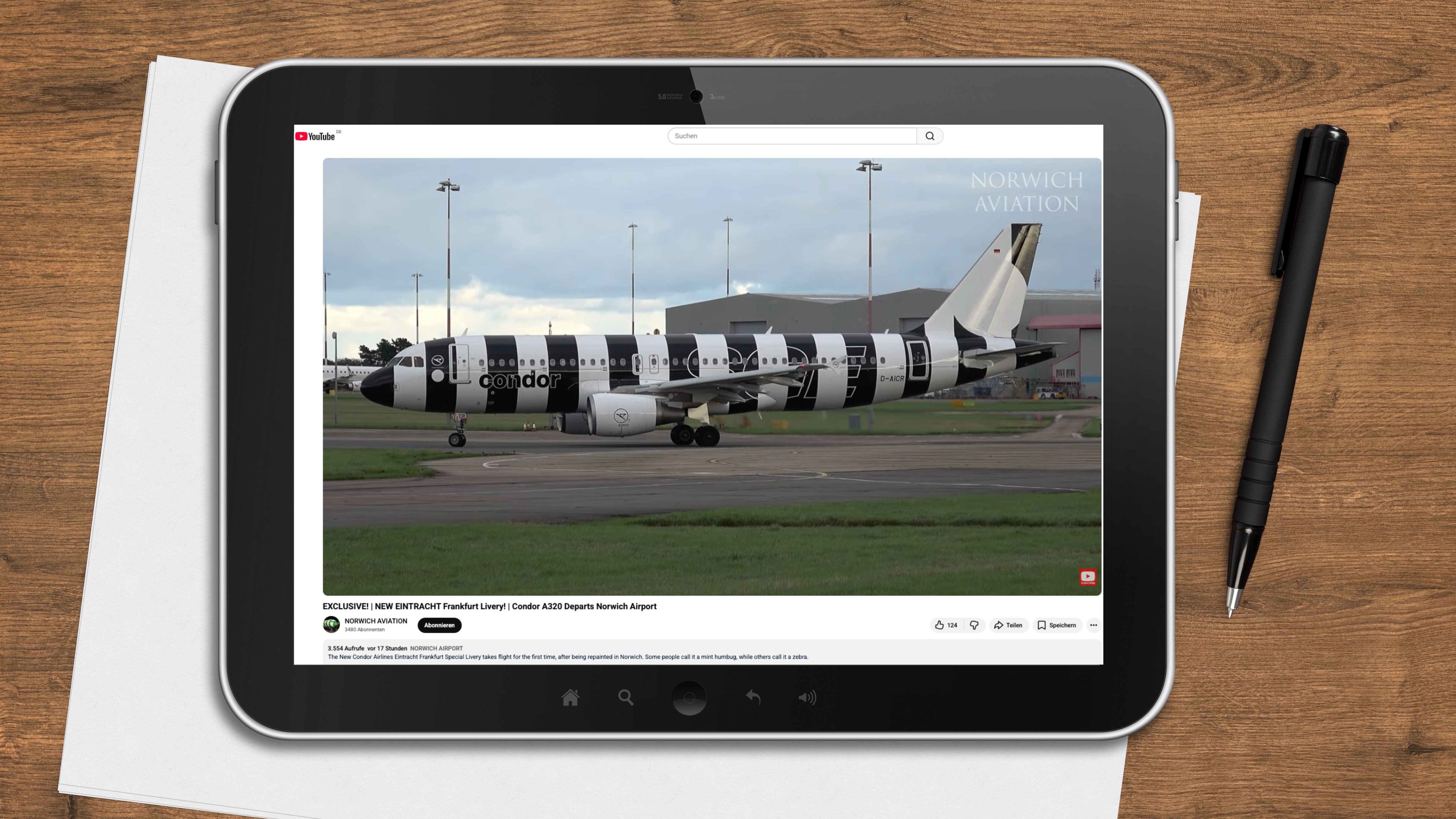 Sehen Sie hier das Video des Kanals Norwich Aviation, das die D-AICR in Eintracht-Frankfurt-Lackierung zeigt:
