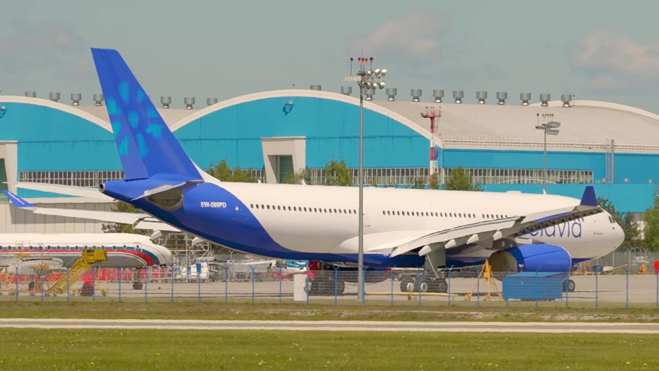 In einem Fernsehbeitrag ist einer der Airbus A330 in der Belavia-Lackierung zu sehen. Freundlich gesinnte Länder sind unter anderem die Vereinigten Arabischen Emirate und Russland.
