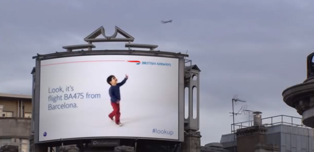 Denn: Dort wo die Kinder hinzeigen, kann man einen Flieger von British Airways am Himmel sehen. Und damit nicht genug. Plötzlich erscheint auf der Werbetafel ein Text, der dem Betrachter genau sagt, von wo nach wo das Flugzeug unterwegs ist. Bei British Airways hofft man darauf, dass durch die Werbung das Fernweh der Kunden angefeuert wird. «Jeder hatte schon Mal die Unterhaltung mit jemandem, wo hin wohl der Flieger am Himmel unterwegs ist. Und dass man selbst gerne an Bord wäre», so das Unternehmen.