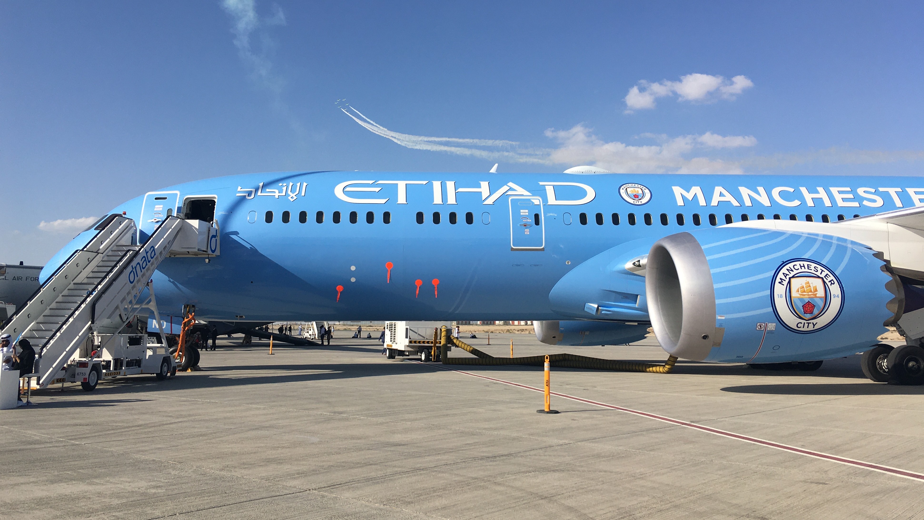 Denn Emirates-Konkurrent Etihad Airways ist Trikotsponsor und Namensgeber des Stadions (Etihad Stadium) von Manchester City. Die Fluggesellschaft aus Abu Dhabi hat auch schon einen Airbus A330-200 und eine Boeing 787-9 im Manchester-City-Design lackiert.