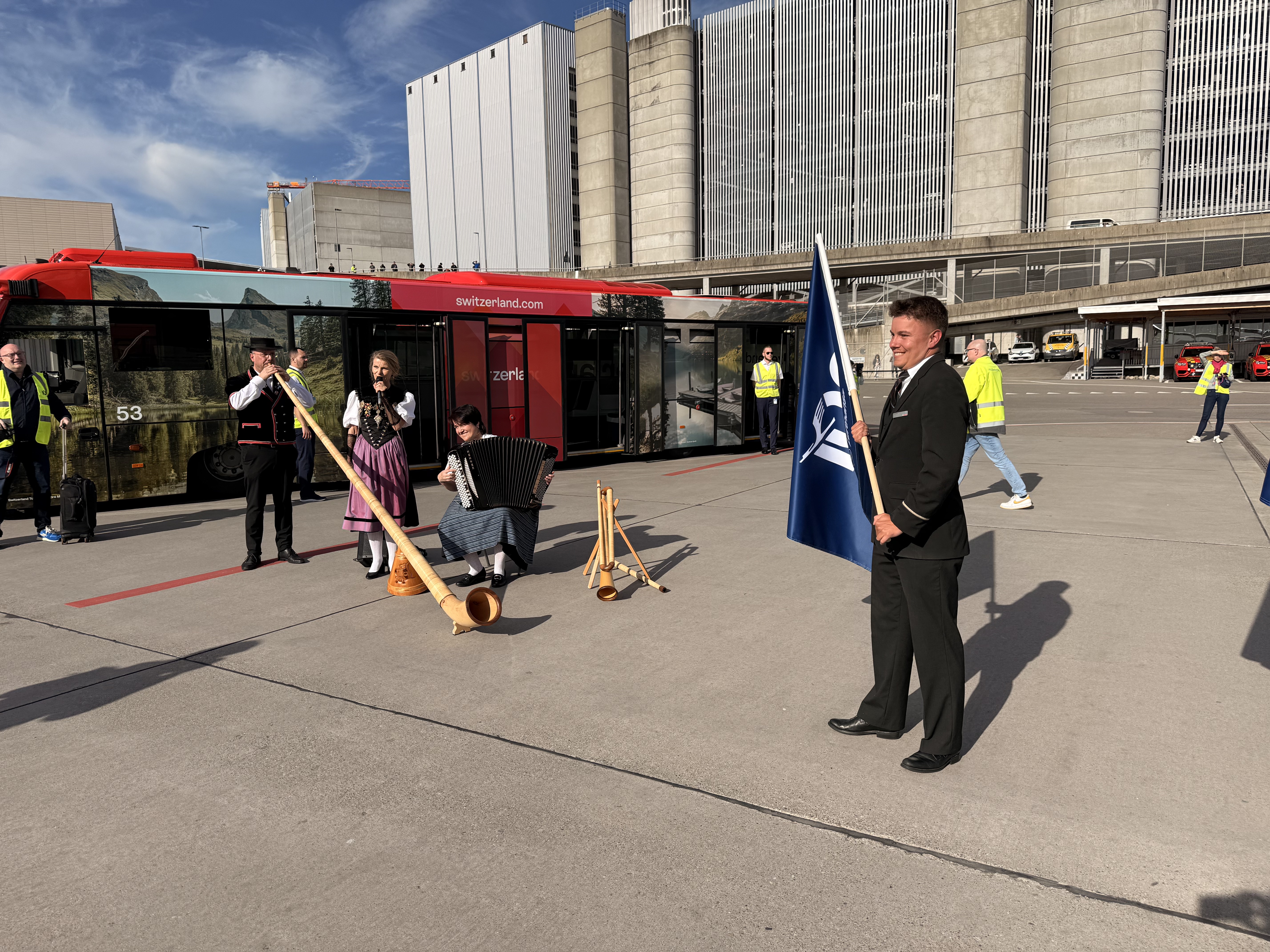 Die Fokker-Grulich F.II machte am 6. April 1926 noch Zwischenlandungen in Halle, Erfurt und Stuttgart aus. Die drei Städte überfliegt der Dreamliner von Flug LH1926 aber immerhin, bevor er zuerst eine Zusatzrunde über dem Schwarzwald, über Konstanz und dem Rheinfall dreht und schließlich in Zürich landet. Dort gibt es für die D-ABPU erneut eine Wasserfontäne. Und die Fluggäste werden nach dem Aussteigen von einem Jodelchor und einem Alphornbläser begrüßt.