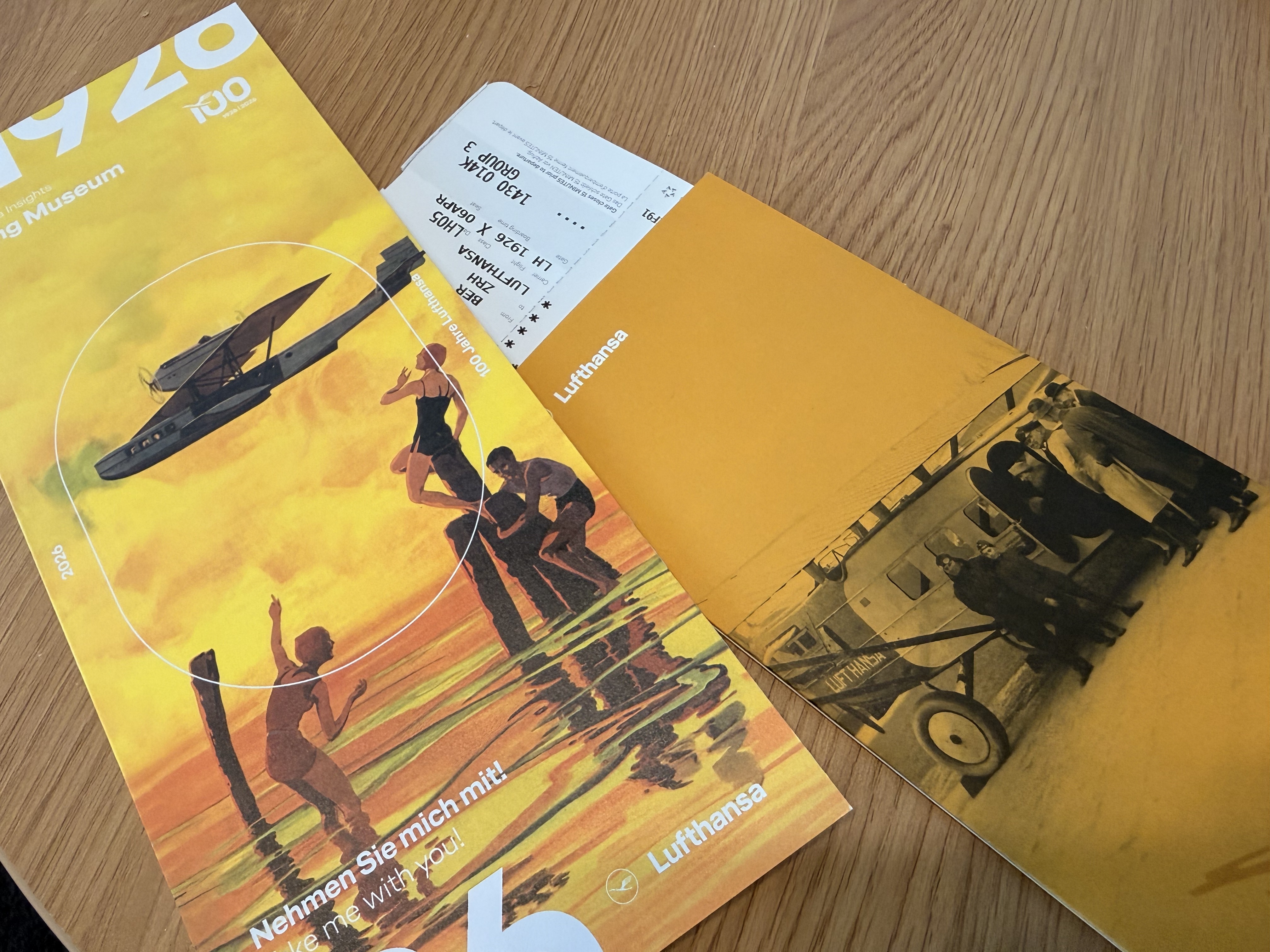Fluggäste erhielten eine gedruckte Bordkarte im Spezialumschlag und eine historische Broschüre.
