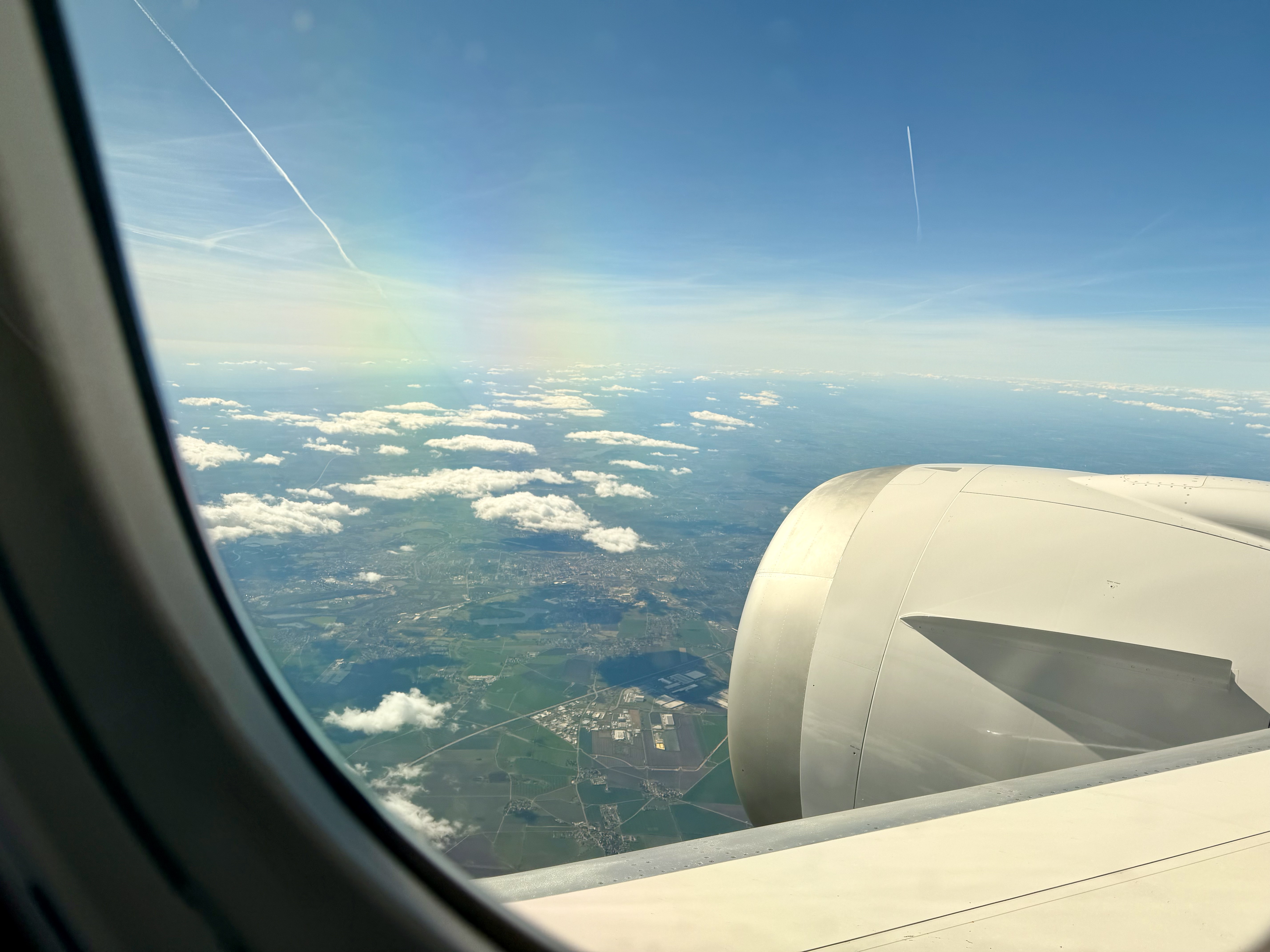 Auf dem Flug wird den Gästen sein Spezialmenü serviert (auf den ersten Flügen gab es übrigens noch kein Essen). Die Stimmung ist locker, mit dabei sind neben Mitarbeitenden und geladenen Gästen vor allem auch viele Luftfahrtfans. Und man tauscht seine Erlebnisse untereinander aus. Die Boeing 787 fliegt der originalen Strecke nach, lässt aber etwas aus.