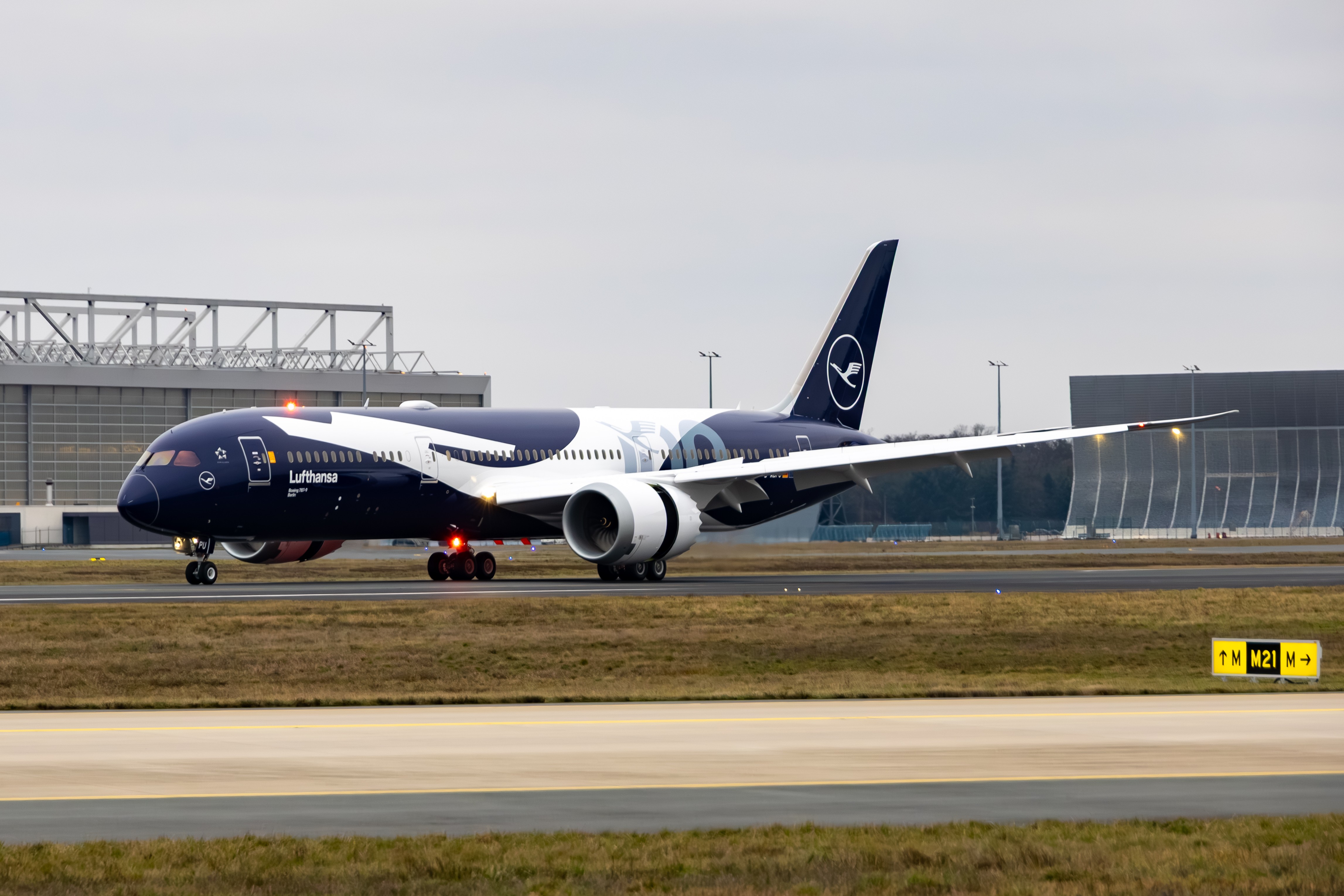 Wie ein Weihnachtsgeschenk: Am Dienstagmorgen (23. Dezember) um 9:38 Uhr landete die D-ABPU mit Überführungsflugnummer LH9919 am Flughafen Frankfurt - aus Everett bei Seattle kommend. Neben der Boeing 787-9 erhalten auch eine 747-8 die Sonderlackierung, sowie je ein Airbus A320 Neo, A350-900, A350-1000 und A380.