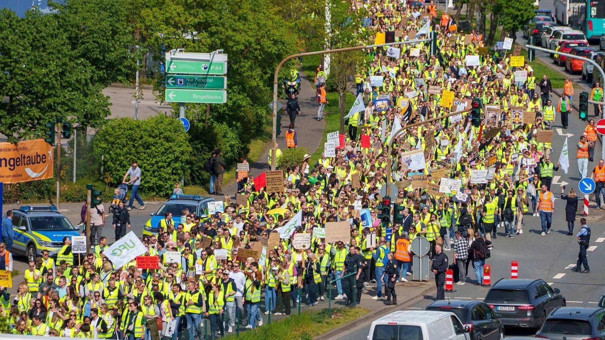 Während am 15. April im Hangar One am Frankfurter Flughafen die Lufthansa-Spitze um Konzernchef Carsten Spohr den Festakt zum 100. Geburtstag der Fluglinie beging und sogar Bundeskanzler Friedrich Merz sowie Hessens Ministerpräsident Boris Rhein als Ehrengäste geladen waren, demonstrierten draußen rund 1150 Beschäftigte des Konzerns.