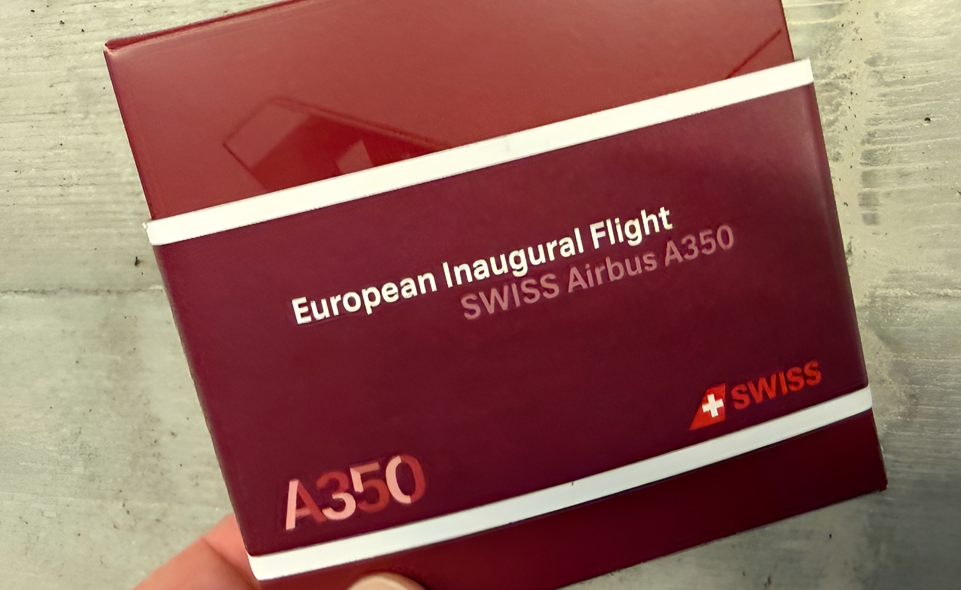 Dass der Airbus A350 wegen der Zuteilung eines späten Slots schließlich mit rund 40 Minuten Verspätung in Zürich abhob, kümmerte wohl die wenigsten an Bord. Für die meisten war der Weg das Ziel. Und so wurden an Bord auch viele Fotos geknipst. Und sehr viele Selfies. Swiss hatte ihnen beim Einsteigen ein kleines Geschenk zur Erinnerung überreicht - ein Flugzeug aus Schokolade, verpackt in einer Schachtel mit Erstflug-Banderole.