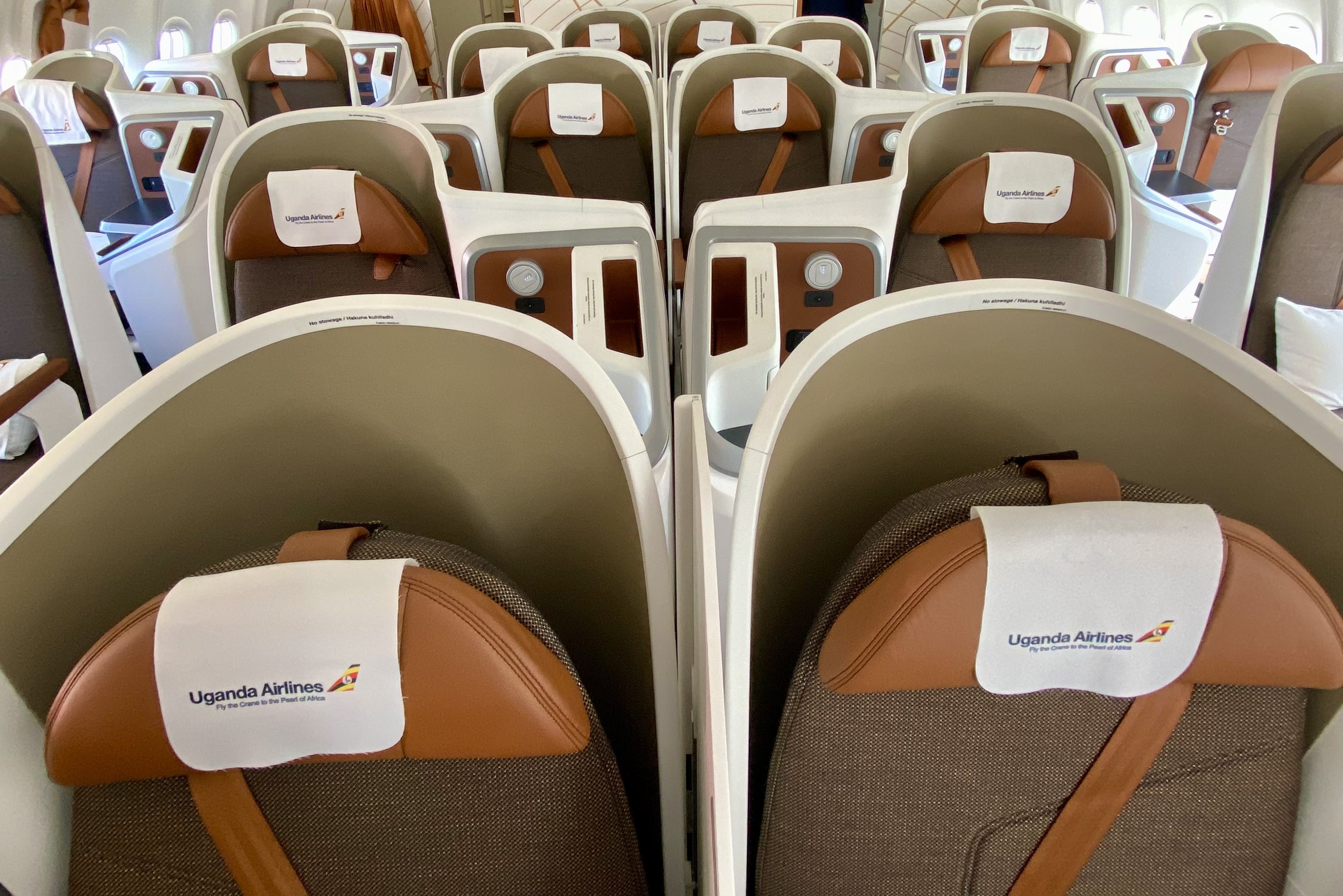 Blick in die Business Class im Airbus A330-800 von Uganda Airlines: Hier gibt es 20 Plätze, hinzu kommen 28 in der Premium Economy und 210 in der Economy Class. aeroTELEGRAPH