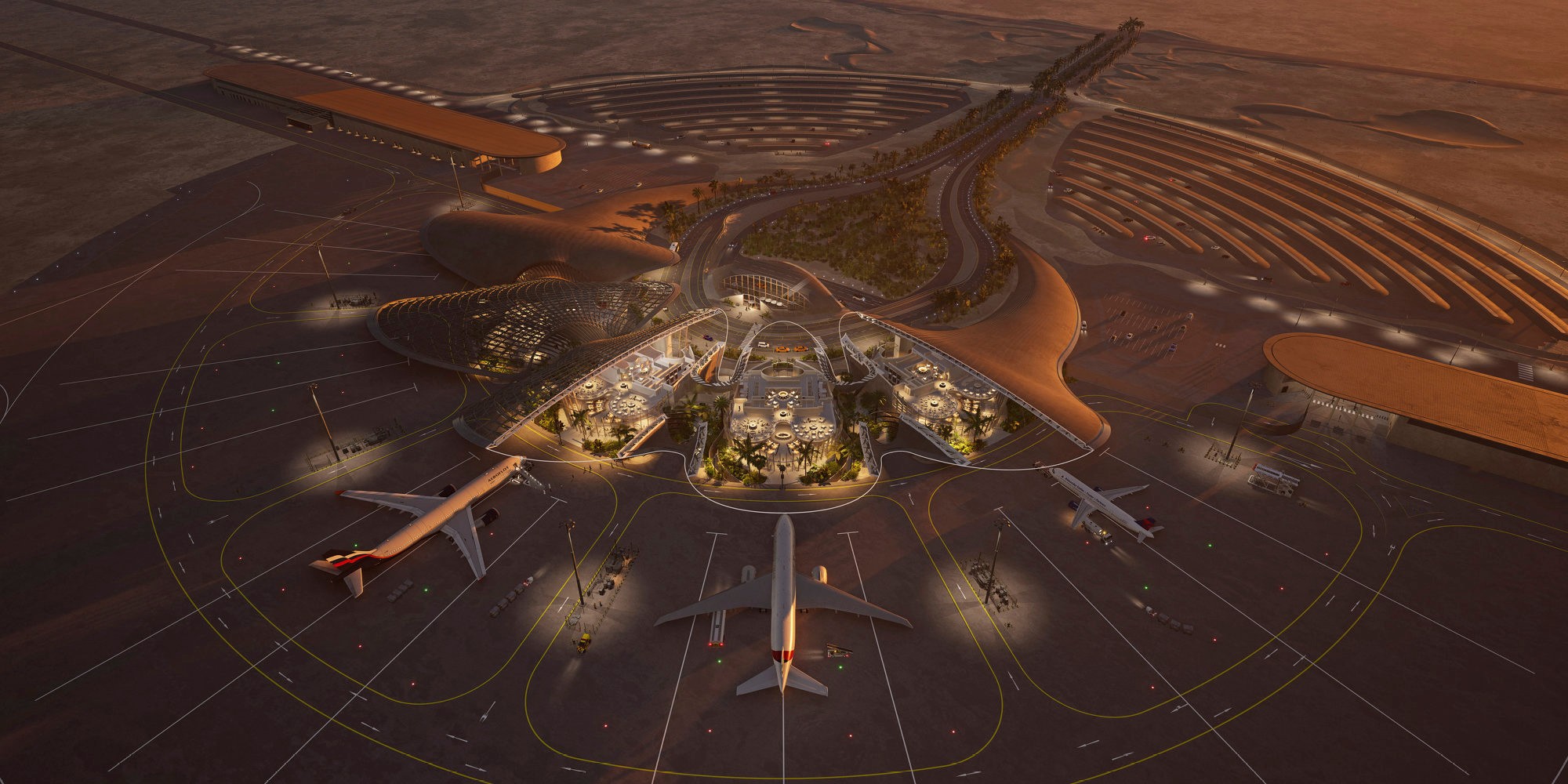 Animation des Red Sea Airports: 2030 soll der Flughafen eine Million Reisende abfertigen. Foster + Partners