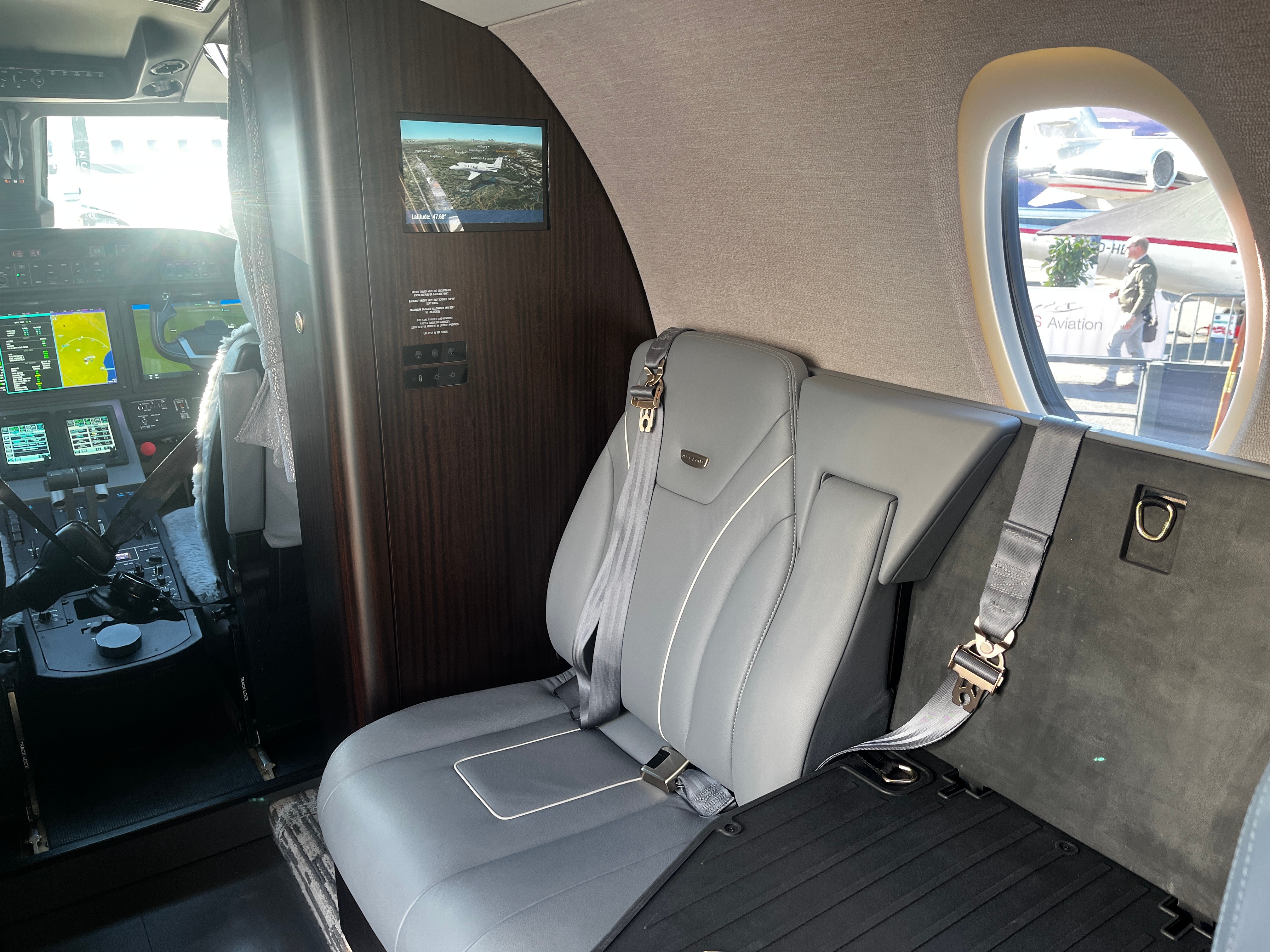 Ebenfalls überarbeitet wurden die Sitze. Textron entwickelt und baut sie selbst und hat die Neigungswinkel gegenüber dem Vorgänger deutlich erweitert. Die Verstellung erfolgt elektrisch: Ein Knopfdruck genügt, die Lehne fährt sanft in die gewünschte Position. «Er ist einer der populärsten Sitze, die wir in unseren Flugzeugen haben, und sehr komfortabel», sagt Anderson. Und das stimmt, der Sitz ist breit und bietet viel Platz.