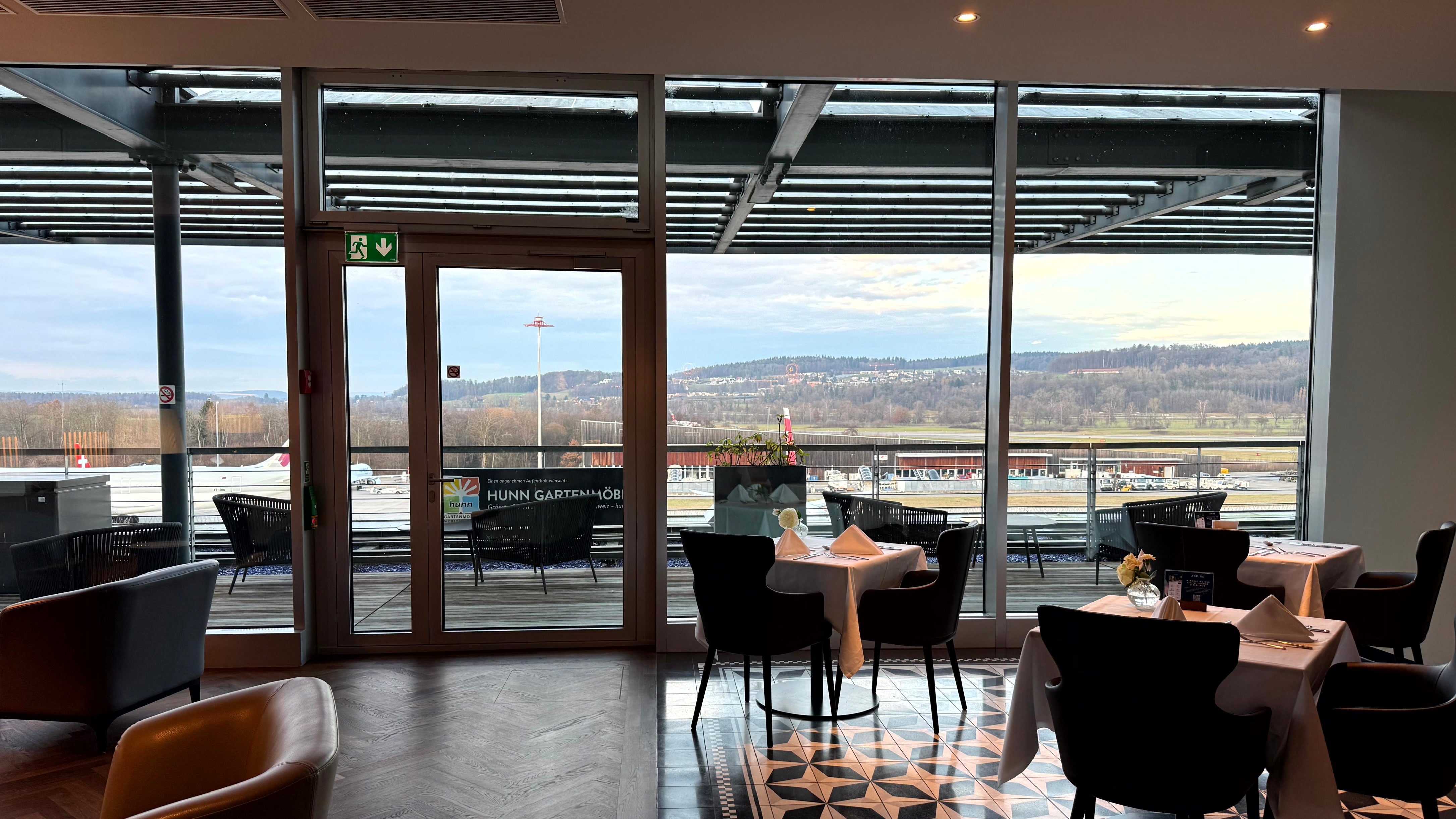 Die Aussicht kommt zuerst. Mitten im Dock E, Blick aufs Vorfeld - und bei gutem Wetter bis zu den Alpen. Genau diese Lage hat am Flughafen Zürich den Ausschlag gegeben für ein Konzept, das es weltweit bislang erst zwei Mal gibt: die Aspire Suite. Sie war lange die First Lounge von Swissport. Erst später erhielt sie ihren neuen Namen Aspire Suite und damit auch eine neue strategische Einordnung.