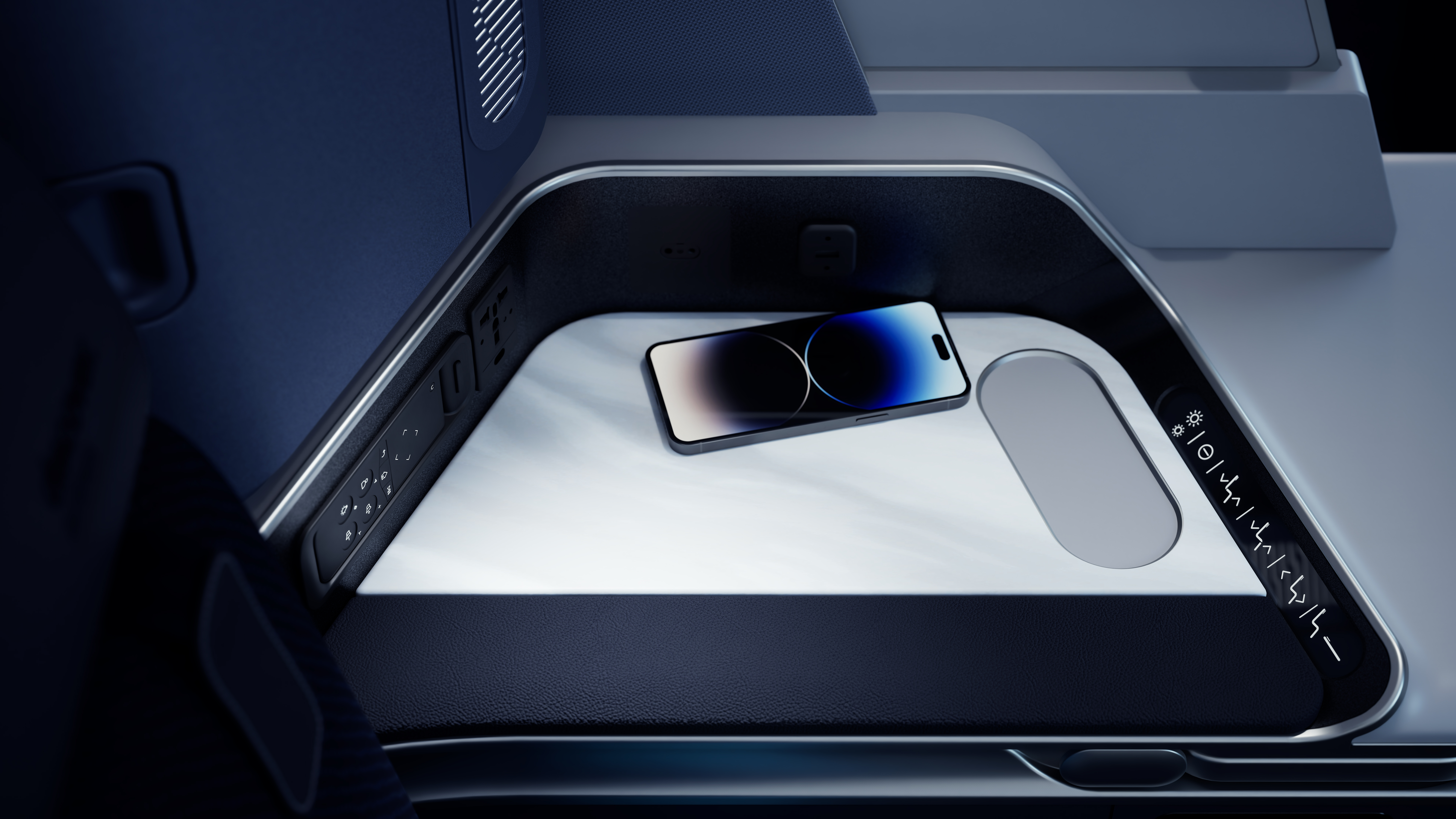 Premium Economy: Kabelloses Laden unter der Armlehne