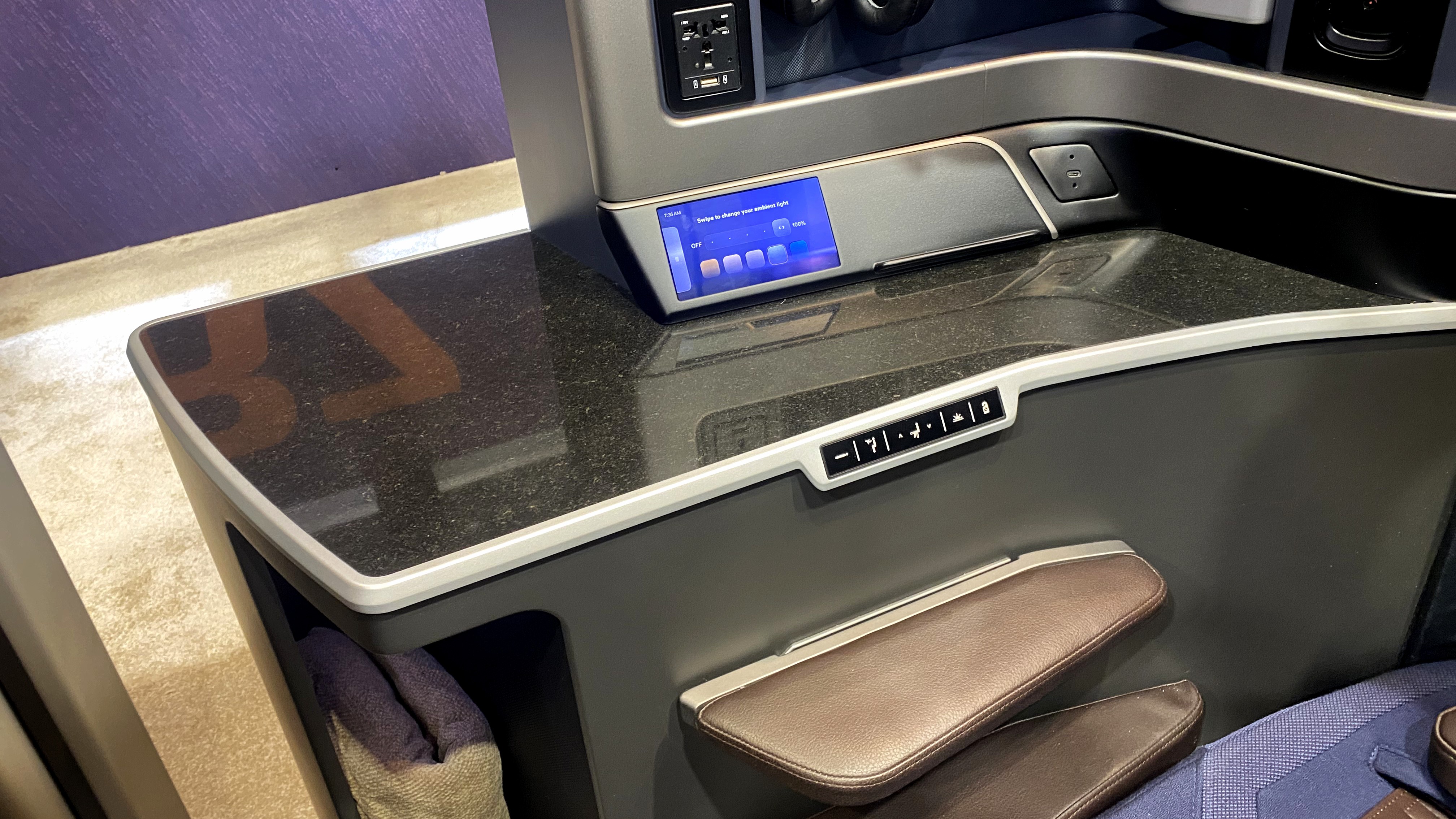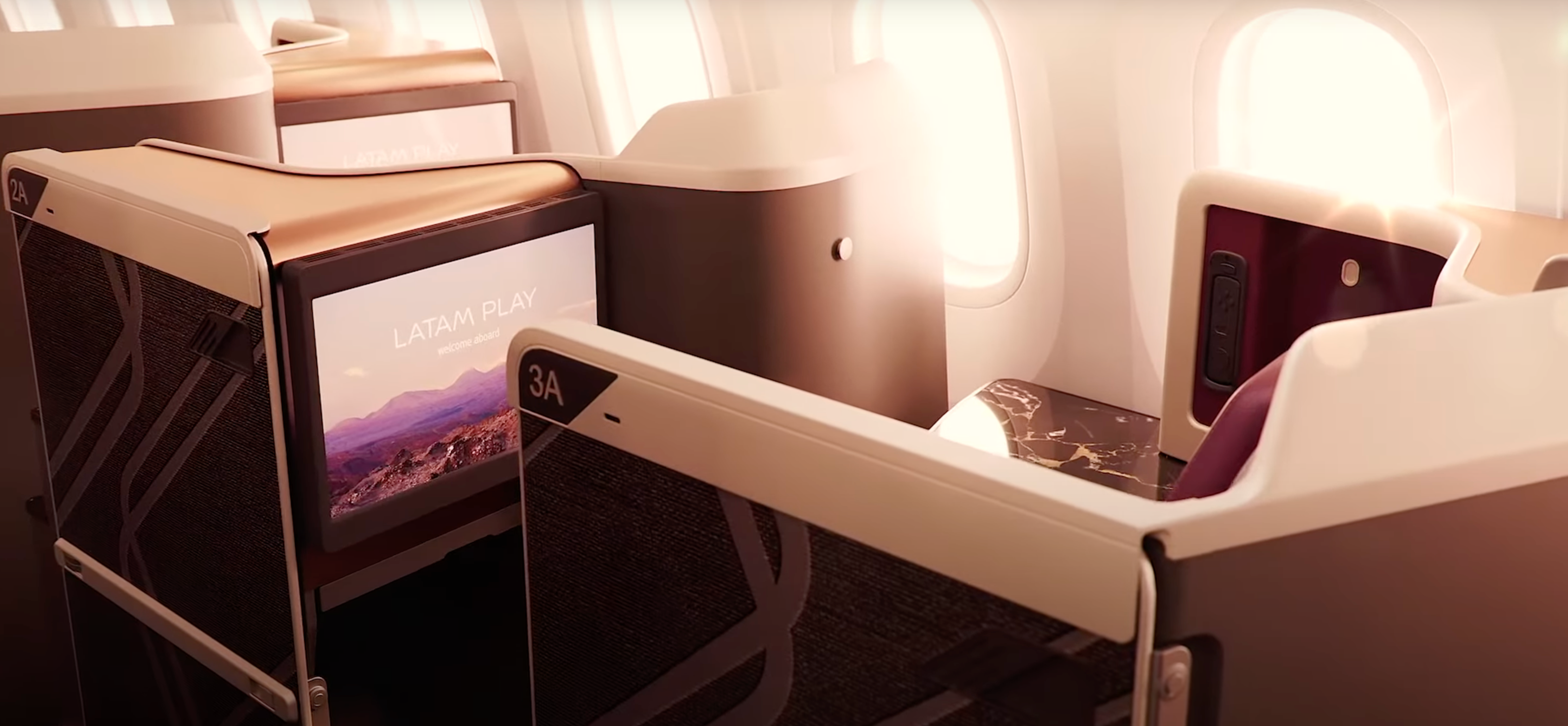 Vorschau auf die neue Business-Class von Latam: Ablagefläche aus Stein. Latam