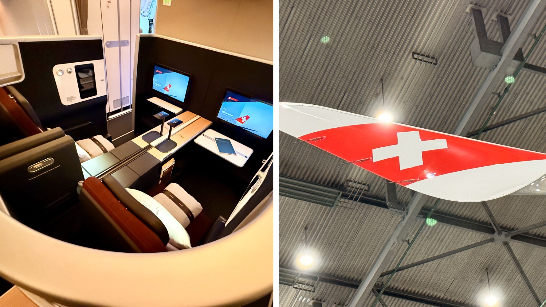 Im Kern ist das neue Interieur von Swiss das von Lufthansas Allegris. «Die gemeinsame Entwicklung des Kabinenproduktes sei wirklich ein großer Vorteil für Swiss, denn die Zertifizierungen werden da nur einmal gemacht. Das ist eine der größten Hürden und der größten Herausforderungen, die man derzeit hat», erklärte Kommerzchefin Heike Birlenbach. Der große Unterschied zu Allegris sei «das, was Sie im Flugzeug sehen und was Sie fühlen. Die Materialien, die wir hier genutzt haben, die Farben, die wir genutzt haben, das ist der Unterschied».