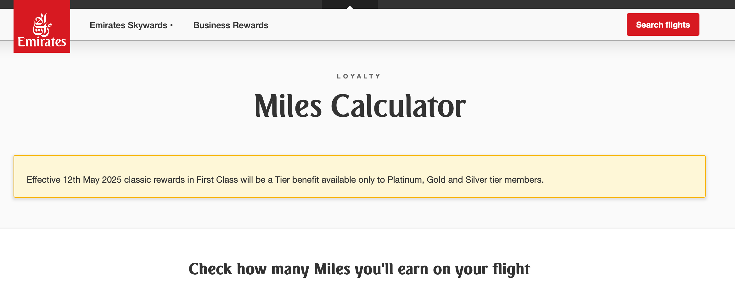 Ein Emirates-Sprecher erklärt gegenüber aeroTELEGRAPH, man habe im Rahmen einer regulären Geschäftsüberprüfung die Kriterien für sogenannte Classic Rewards angepasst. «Ziel ist es, unseren treuen Mitgliedern mit höherem Status mehr Vorteile, exklusivere Belohnungen und besseren Zugang zur First Class zu bieten», so der Sprecher.