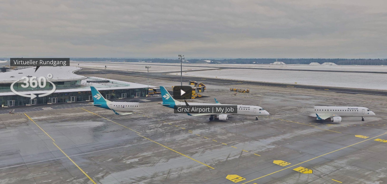 Die Flughäfen Bern, Graz, Innsbruck, Salzburg und Wien haben jeweils eine 360-Grad-Panorama-Kamera (Standbild). Das kann auch mal zu lustigen Anblicken führen, wie hier in Graz: