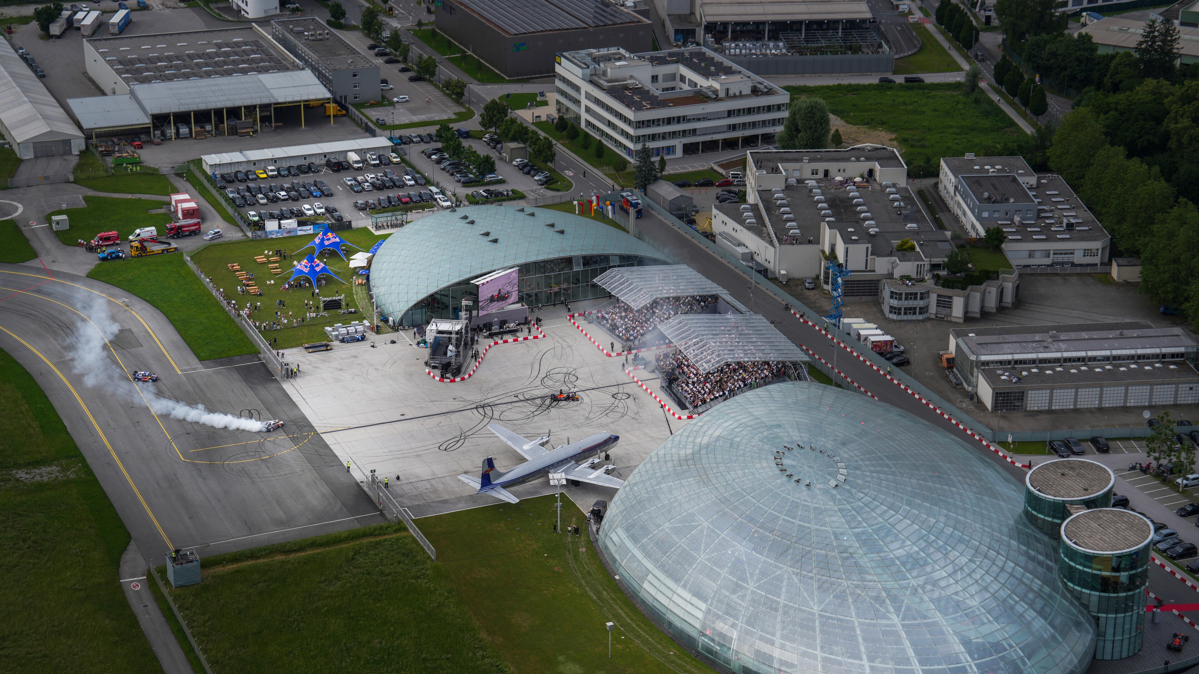 Ein Höhepunkt der Veranstaltung: die eindrucksvolle Airshow der Flying Bulls mit Klassikern wie der Lockheed P-38 Lightning, F4U-4 Corsair, Alpha Jet – und sogar zwei Eurofighter des österreichischen Bundesheers. Für staunende Blicke sorgte auch die Umfunktionierung der Start- und Landebahn des Flughafens in eine Rennstrecke: Vor einer eigens aufgebauten Tribüne donnerten Verstappen und Co. mit ihren Boliden über den Asphalt – begleitet vom Geruch verbrannten Gummis.