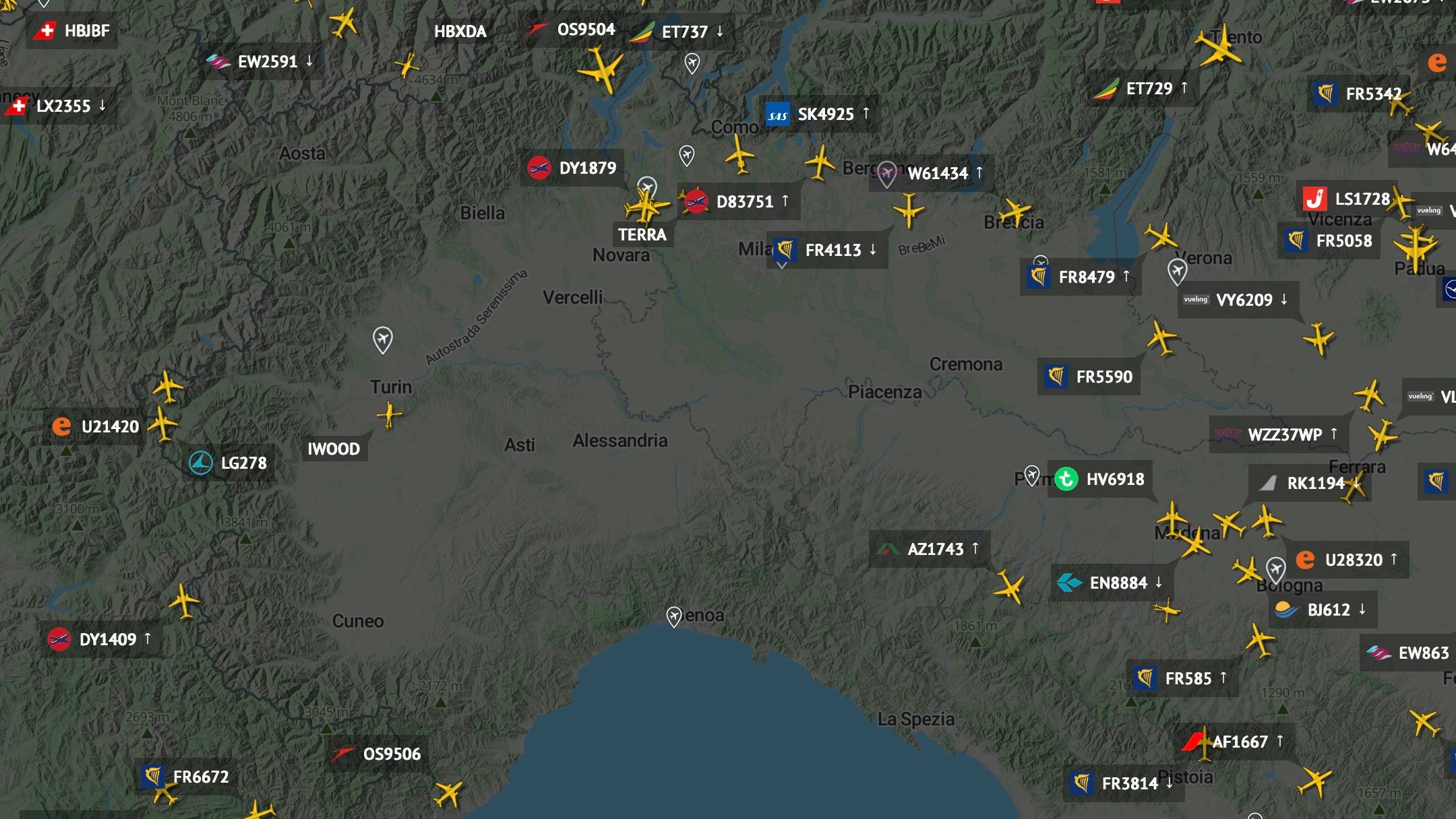 Starts und Landungen an den Flughäfen Mailand-Malpensa, Mailand-Linate, Bergamo, Turin und Genua wurden eingestellt. Mehr als 300 Flüge waren betroffen. Erste Starts wurden gegen 22:15 Uhr unter Einschränkungen zwar wieder freigegeben, jedoch folgte bald ein erneuter Stopp. Eurocontrol leitet Flüge über benachbarte Kontrollräume um.