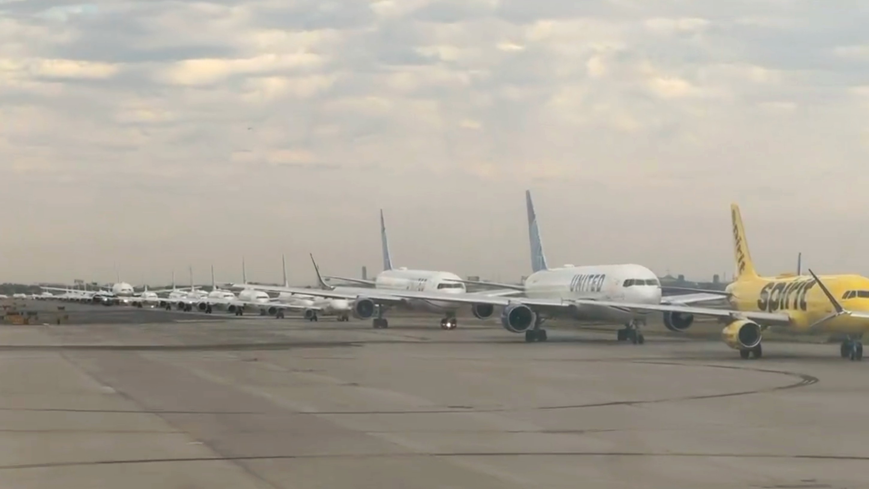 «Das habe ich in meiner ganzen Karriere noch nie erlebt» - mit diesen Worten richtete sich ein Pilot von United Airlines am Wochenende an die Reisenden. Stundenlang standen sie auf dem Vorfeld und warteten darauf, abheben zu können. Bilder und Videos zeigen die Szenen auch von außen: Dutzende Flugzeuge, die alle auf den Start warten.
