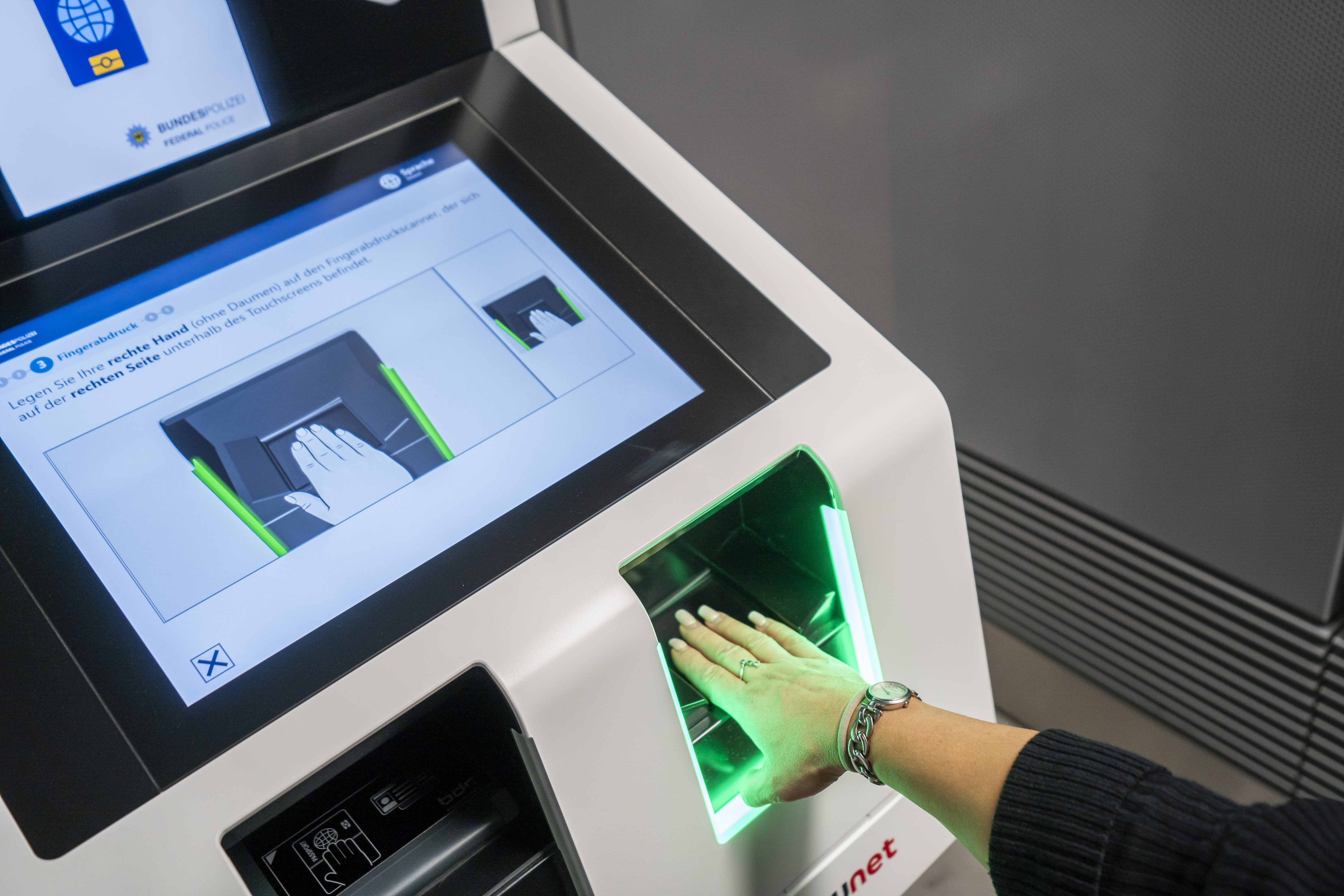 Unter anderem werden vier Fingerabdrücke erfasst. Bundespolizei