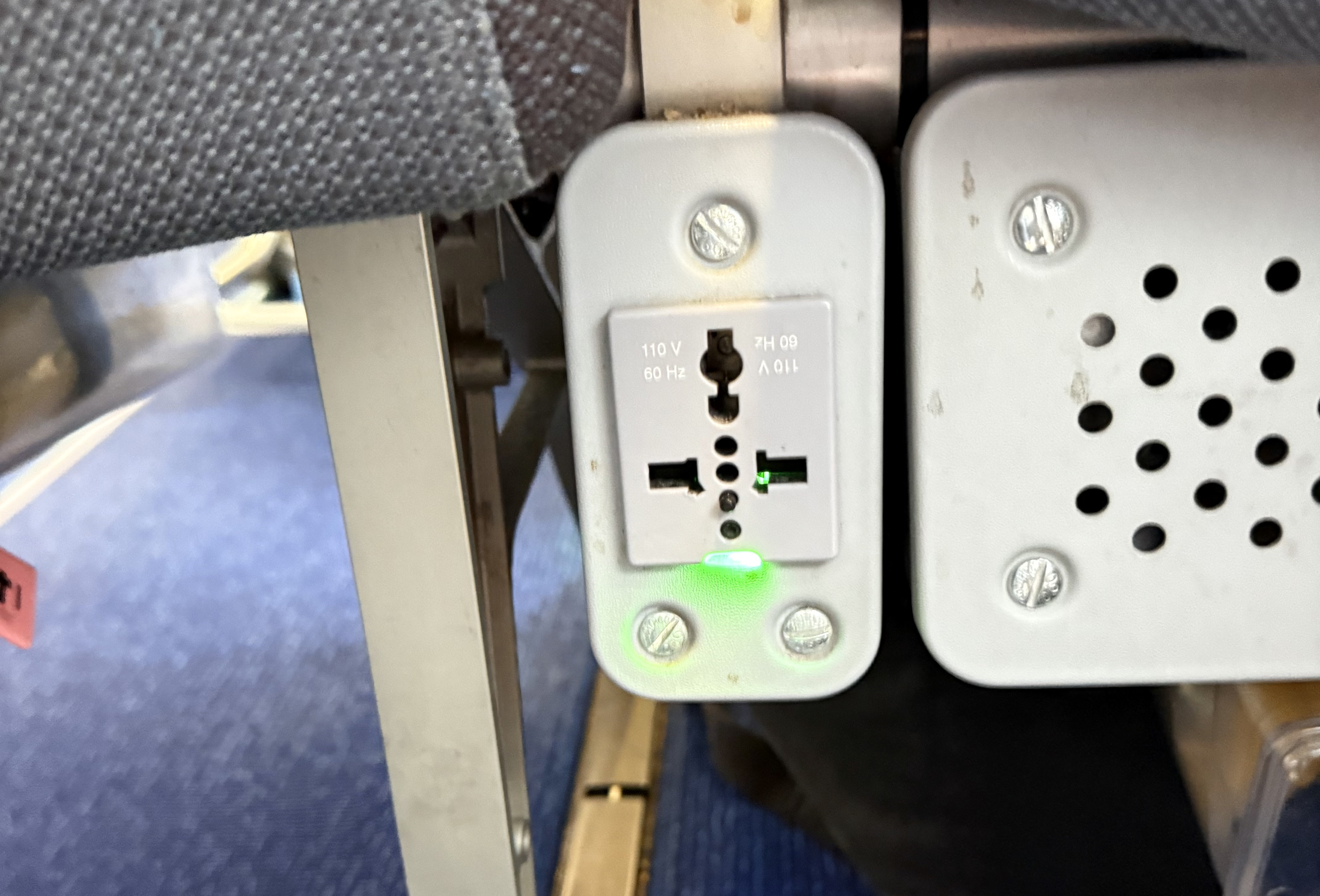 Wifi/Strom: ★★★☆☆. Zum Aufladen der Geräte gibt es unter dem Sitz eine internationale Steckdose. Zudem gibt es am Bildschirm einen USB-Anschluss, allerdings nur einen für die veralteten USB-A-Stecker.