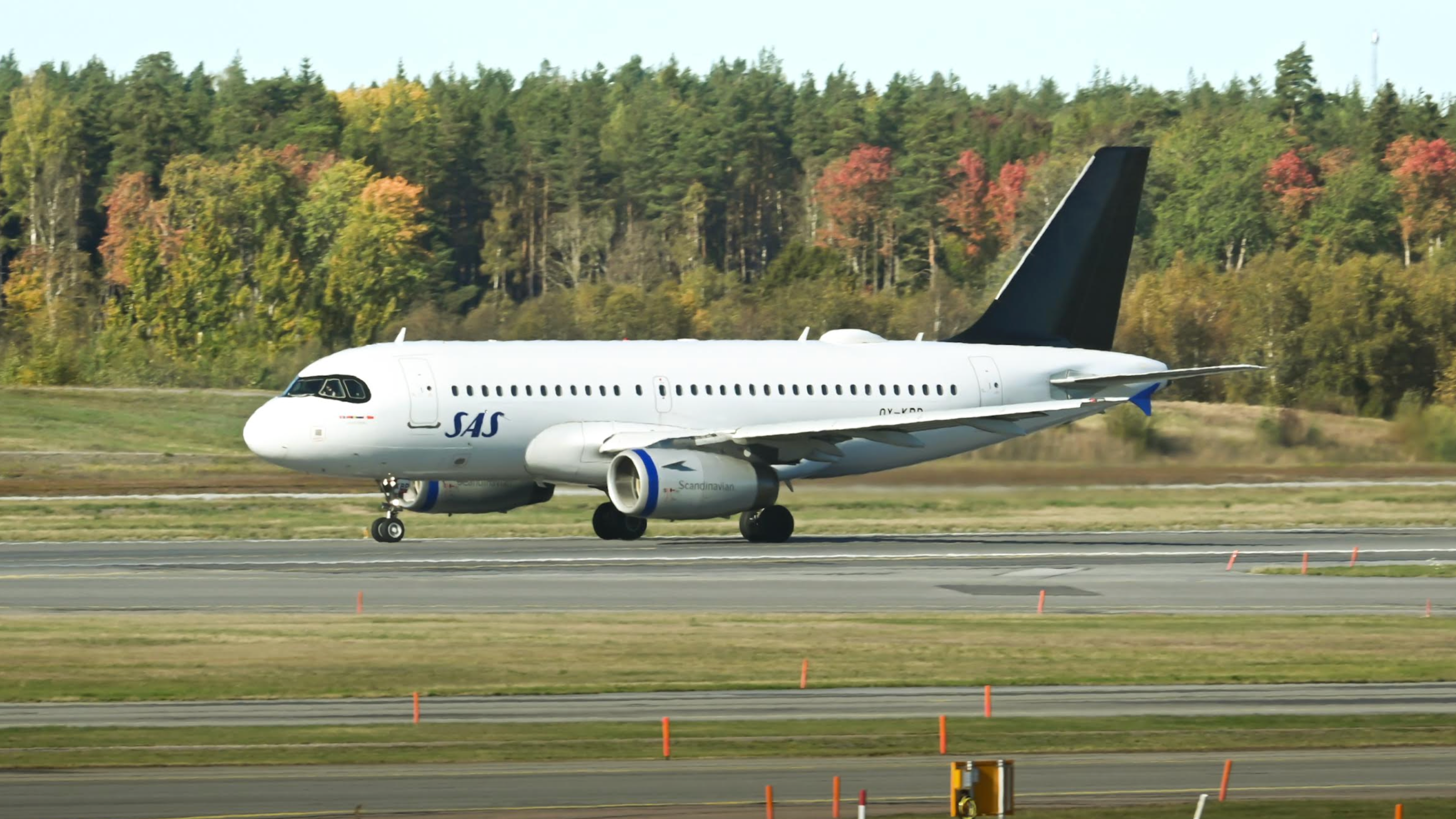 Das Leitwerk des Flugzeuges ist schwarz - eigentlich nicht im Farbschema von SAS enthalten. Dennoch erkennt man, für wen der Jet unterwegs ist: Auf den Triebwerken und vorn am Rumpf steht noch Scandinavian Airlines und SAS.