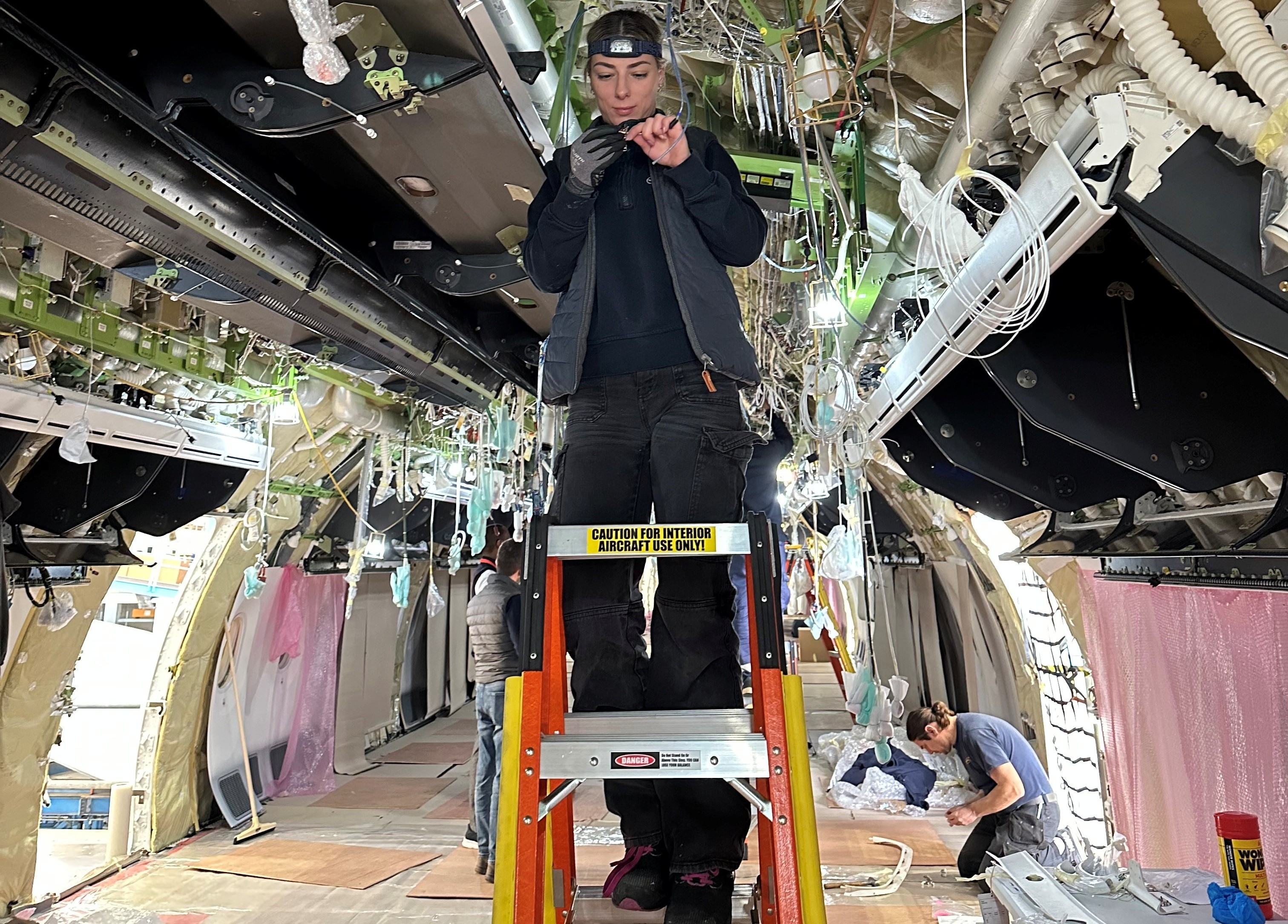 Boeing 787 während des Kabinenumbaus. Lufthansa Technik Malta