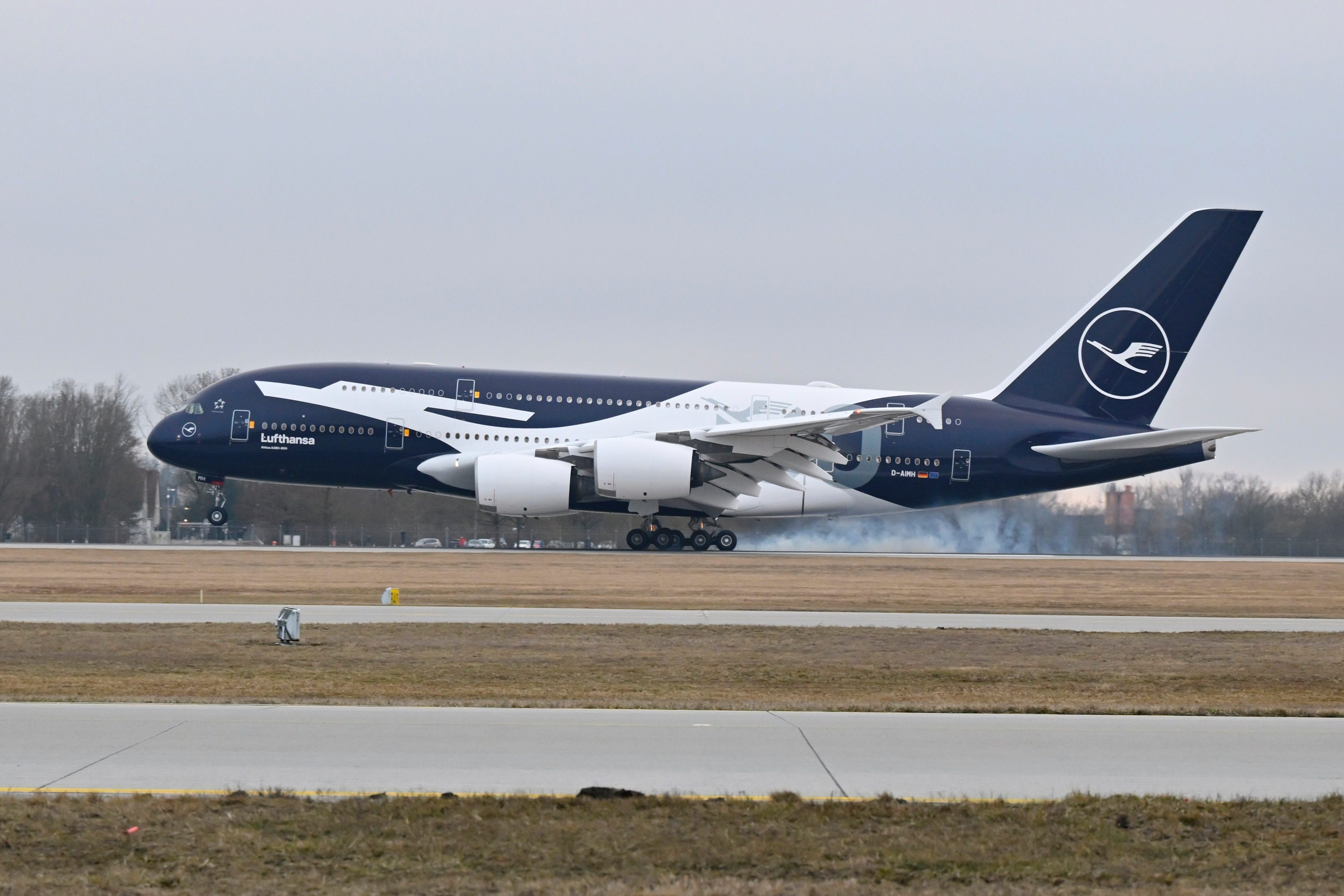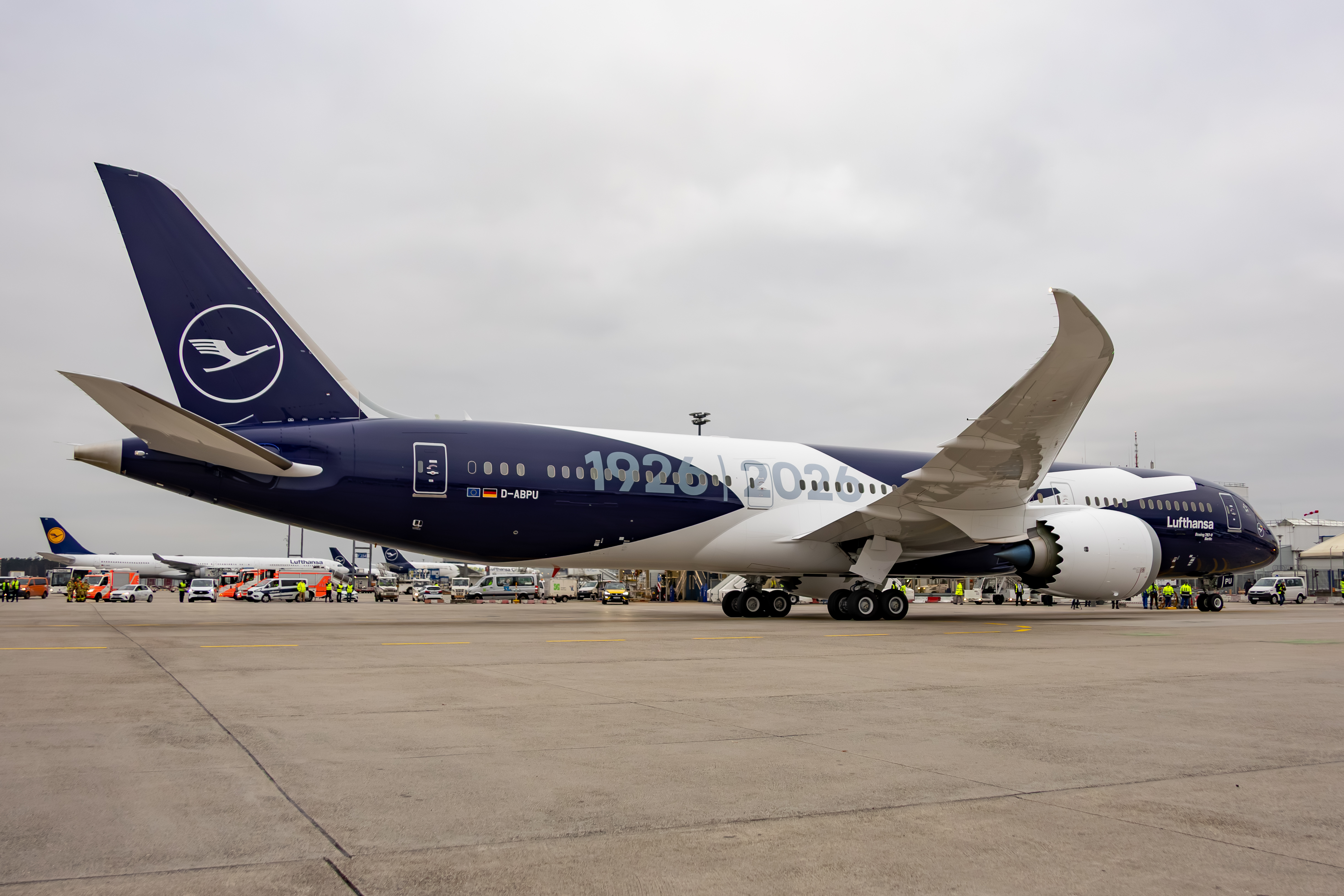 Die sechs so lackierten Jets sind: zwei Airbus A320 Neo (D-AING und D-AIND), ein A350-900 (D-AIXL), ein A380 (D-AIMH), eine Boeing 787-9 (D-ABPU) und die 747-8 (D-ABYN). Damit ist die Jubiläumsflotte nur fast komplett, da noch ein fabrikneuer A350-1000 hinzukommt.