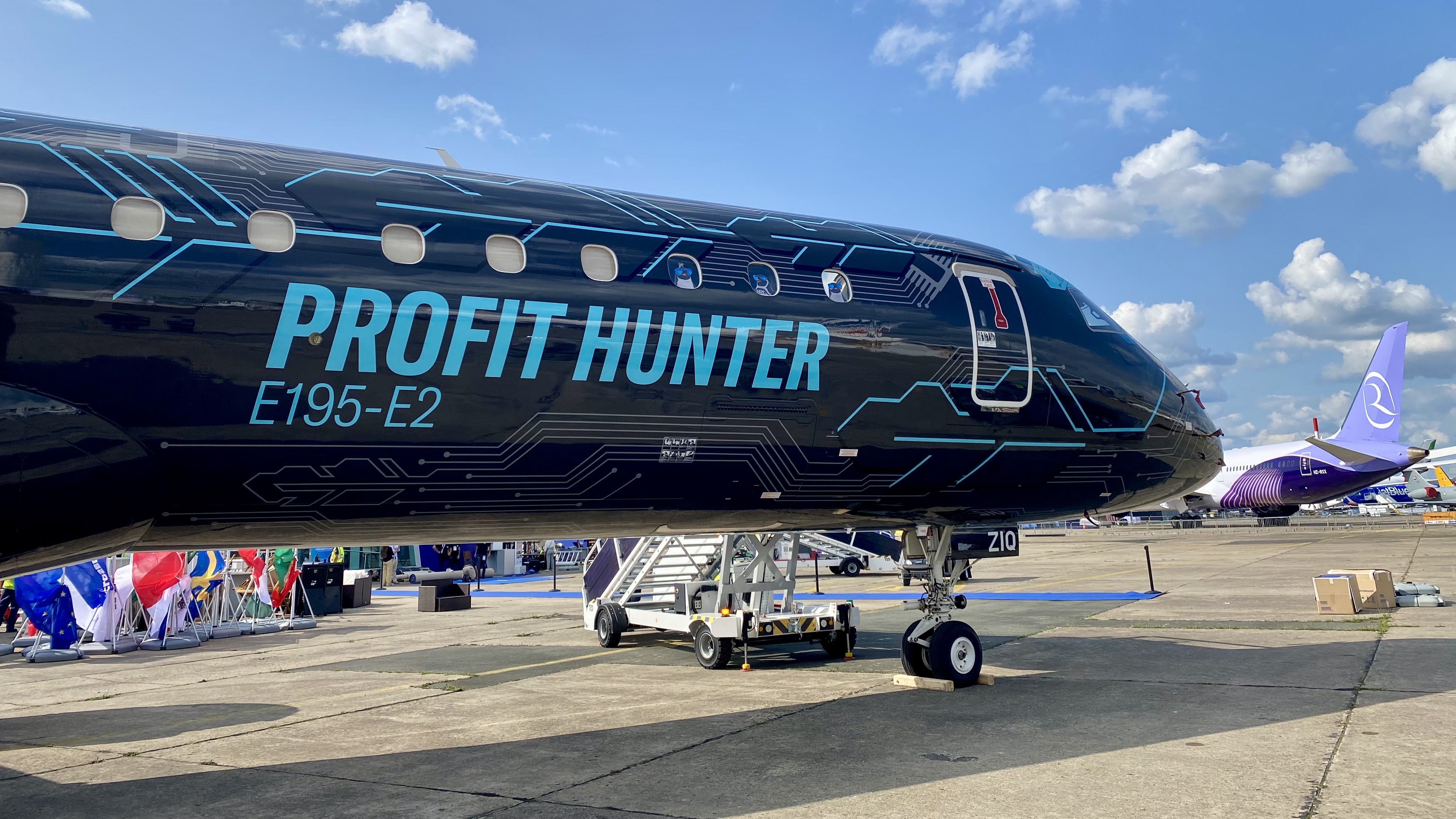 Paris Air Show 2025: Embraer E195-E2 vor einer Boeing 787 in Riyadh-Air-Farben