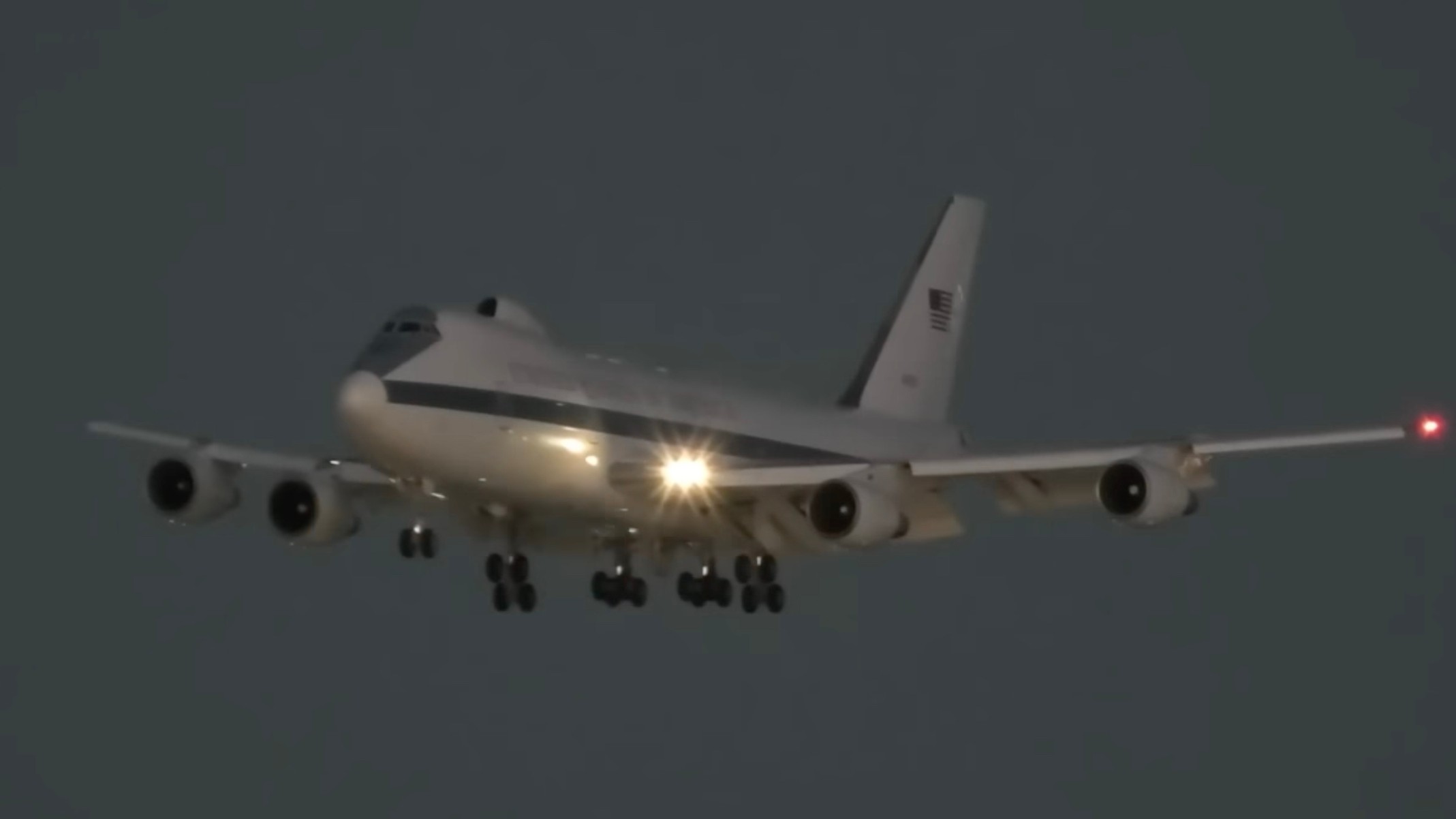 Am Ende werden die Vereinigten Staaten fünf neue Weltuntergangsflugzeuge - oder Doomsday Planes - besitzen. Aktuell setzen sie noch auf vier aufwändig umgebaute Boeing 747-200, die ihren Dienst 1974 antraten. Eine davon wurde nun über Los Angeles gesichtet. Der fliegende Boeing E-4 Advanced Airborne Command Post wird nicht oft öffentlich gesehen. Sie ist nur im Einsatz bei Ereignissen, die erhöhte Sicherheitsvorkehrungen erfordern, wie beispielsweise globale Konflikte oder Naturkatastrophen. Die E-4B unterstützt aber auch gewissen internationale Reisen des Verteidigungsministers.