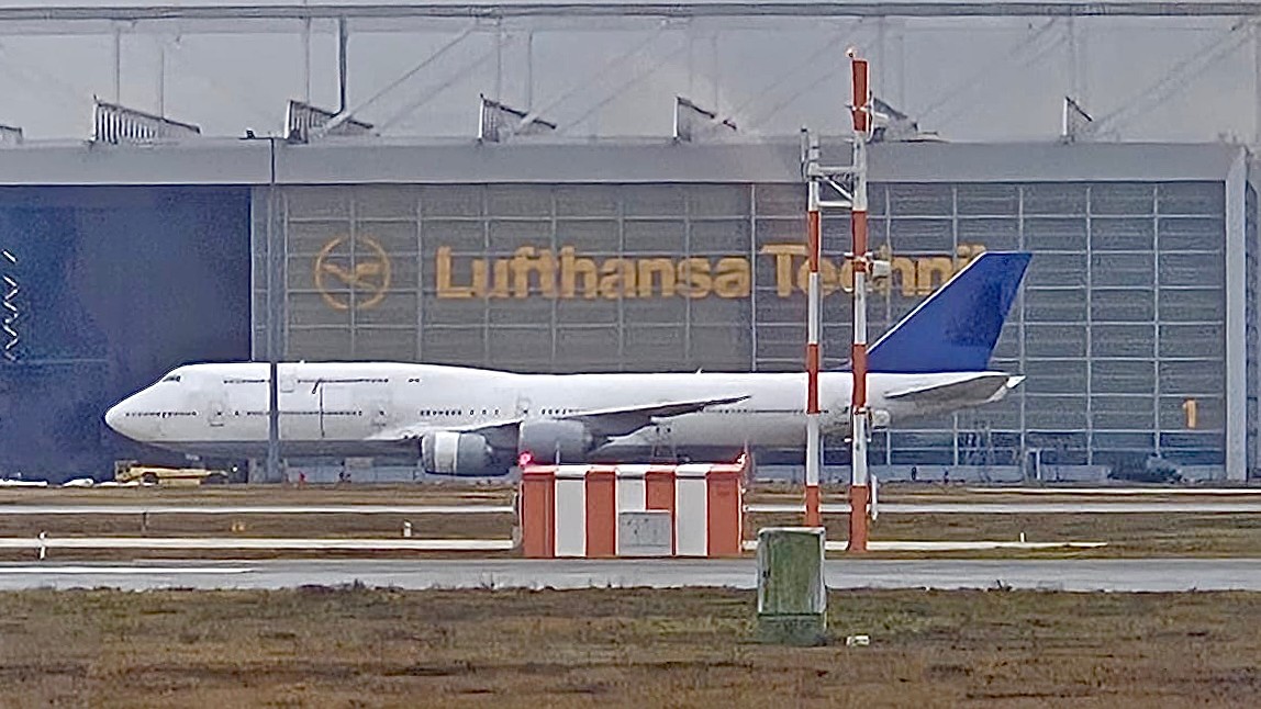 Derzeit steht die Boeing 747-8 im Südwesten des Frankfurter Flughafens auf der Parkposition für Triebwerkstests, weit entfernt von Terminals und Pisten. Sie wird derzeit für die neue Betreiberin U.S Air Force vorbereitet, was sich bereits optisch bemerkbar macht: Die Lufthansa-Logos und -Schriftzüge wurden entfernt, der Kranich ist aus dem Spiegelei am Heck verschwunden, und auch das Kennzeichen wurde überklebt.
