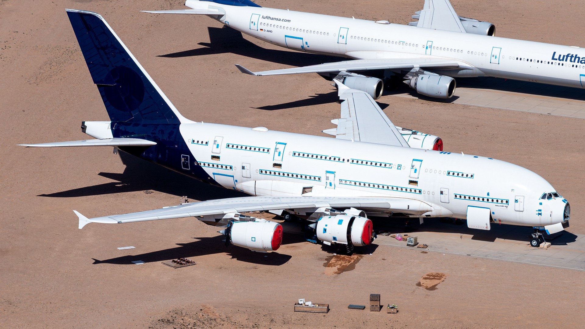 Die ehemalige D-AIMF und heutige F-WTAP in Teruel: Der Airbus A380 wird bald zerlegt.