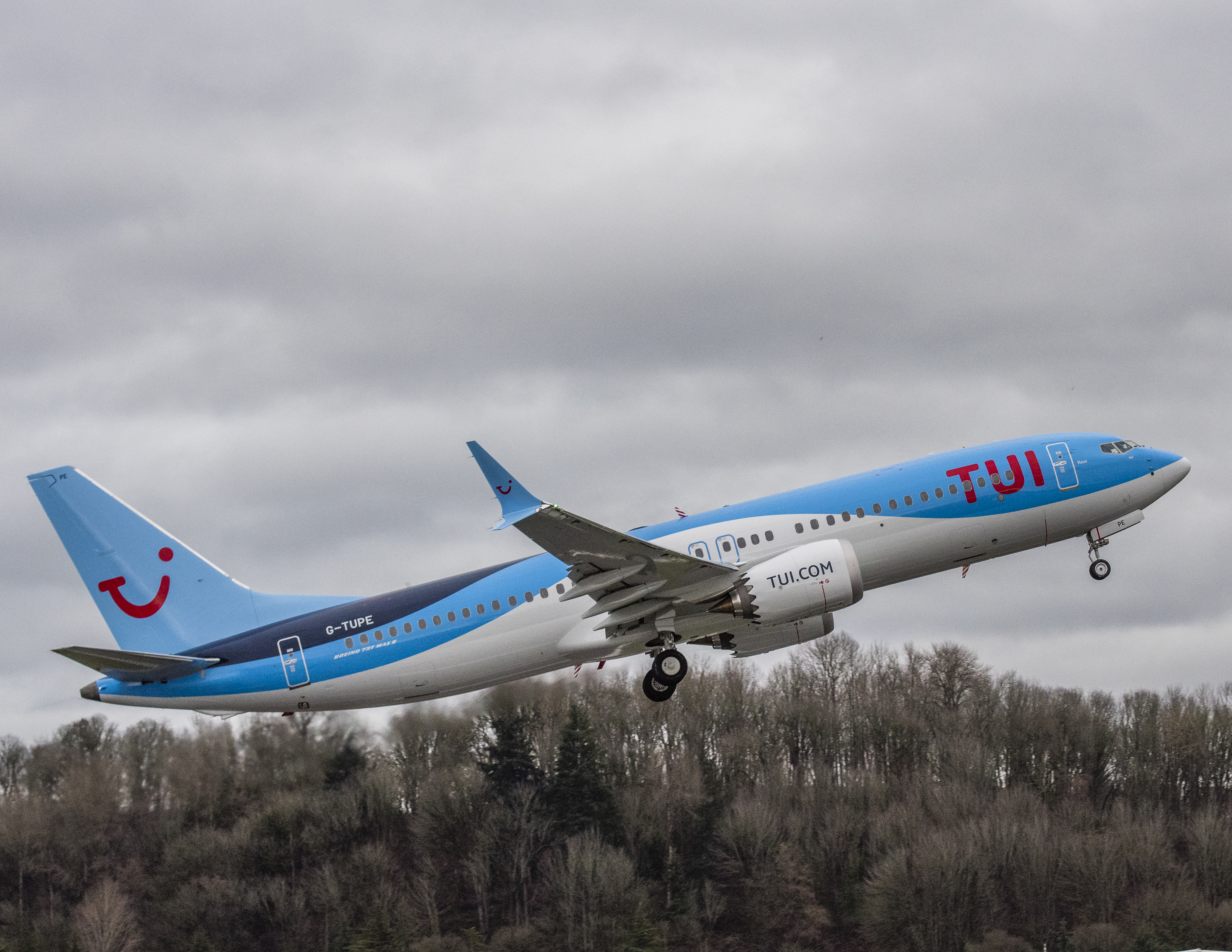 Boeing 737 Max 8 von Tui: Die G-TUPE beim Start in Seattle. Tui