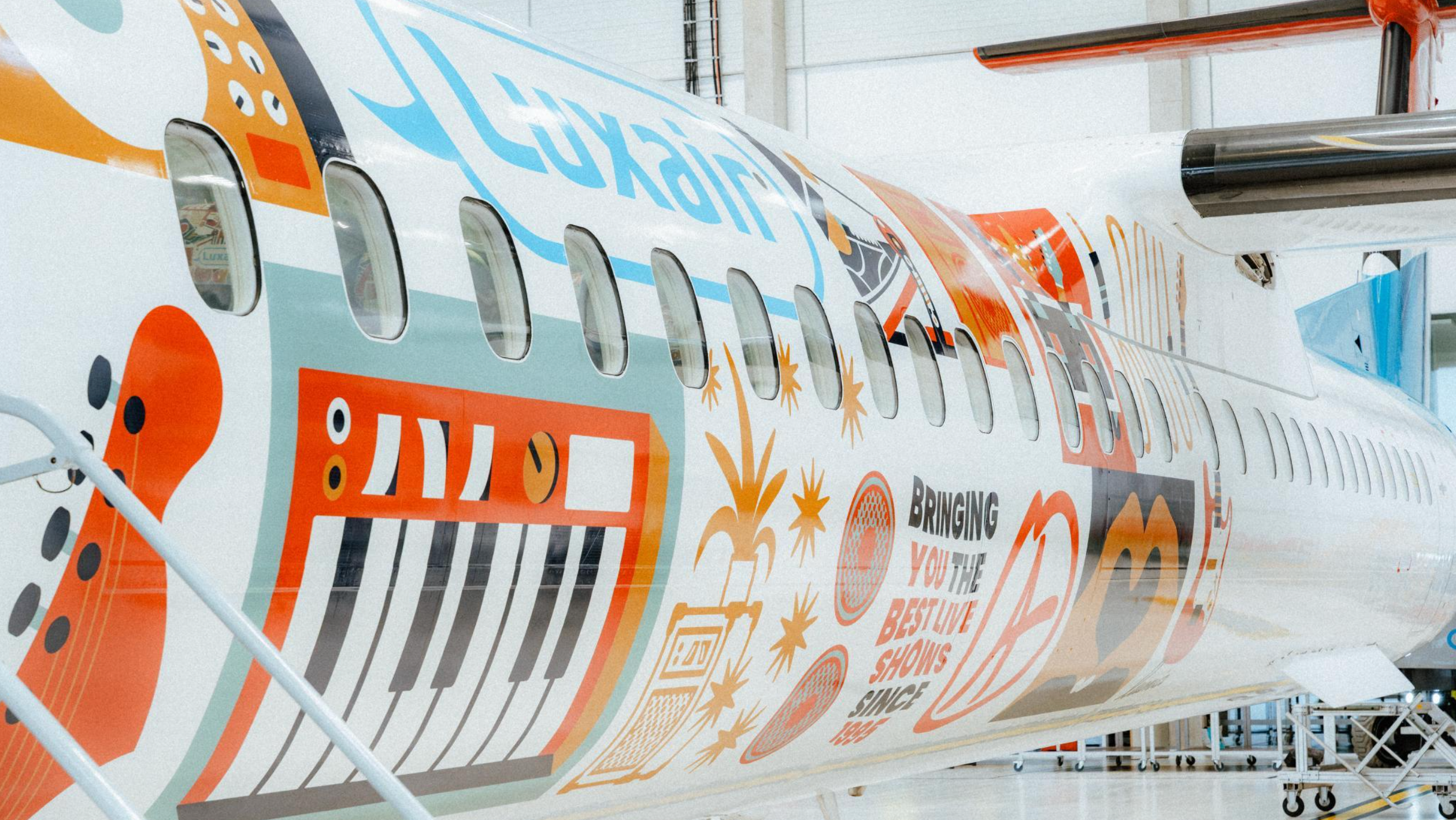 Luxair und den Atelier haben sich mit dem französischen Künstler Loïc Lusnia zusammengetan, der für einen von der Pop-Art inspirierten visuellen Stil bekannt ist. Er kreierte eine besondere Gestaltung für das Flugzeug mit dem Kennzeichen LX-LGN.