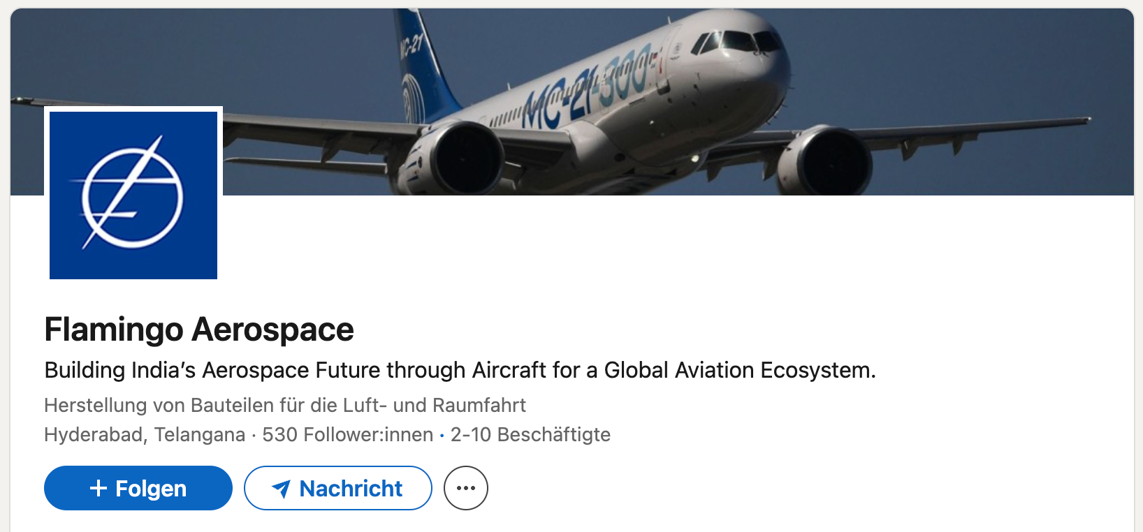 UAC schreibt in einer eigenen Mitteilung: «Das Unternehmen bekundete zudem Interesse an der Umsetzung weiterer UAC-Programme. Dadurch positioniert sich Flamingo Aerospace als wichtiger Partner bei der Vermarktung russischer Luftfahrtprodukte in Indien.» Und tatsächlich scheint Flamingo auch mindestens ein anderes russisches Modell im Blick zu haben. Denn das Linkedin-Profil der indischen Firma ziert ein Foto der Yakovlev MS-21: