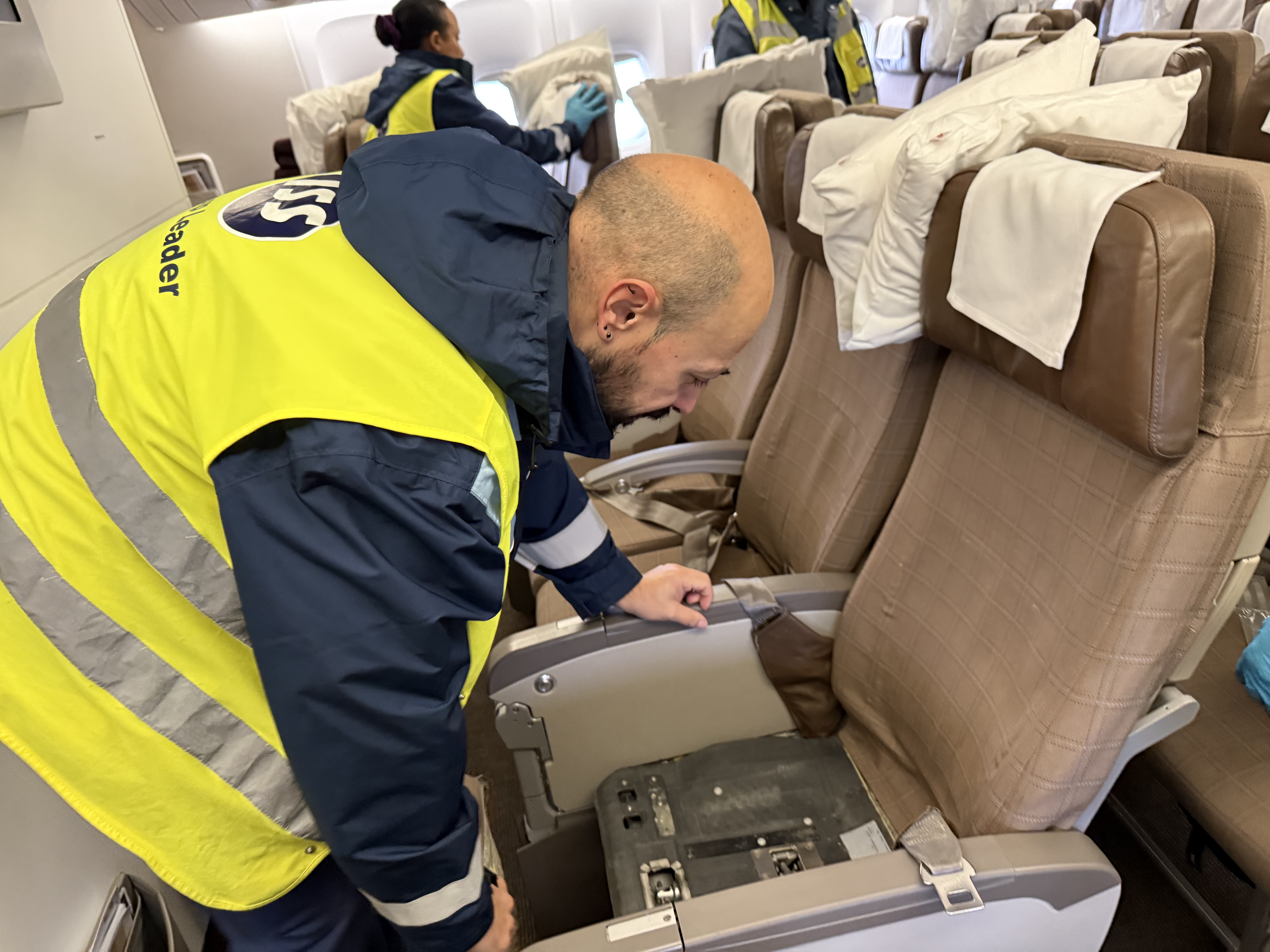 Was genau gereinigt wird, ist nicht einheitlich geregelt, sondern hängt von der jeweiligen Airline ab. Jede Gesellschaft definiert eigene Vorgaben, die von ISS umgesetzt werden. Auf Kurzstrecken ähneln sich diese Anforderungen häufig, während sie auf Langstrecken deutlich variieren. Dort spielen zusätzliche Faktoren eine Rolle: mehr Service, mehr Ausstattung, mehr Ablageflächen. Kissen, Decken oder aufwendigere Sitzkonfigurationen erhöhen den Aufwand. «Je höher die Klasse, desto komplexer ist die Ausstattung», sagt Sporn. Dementsprechend steigt auch der Aufwand bei der Reinigung.