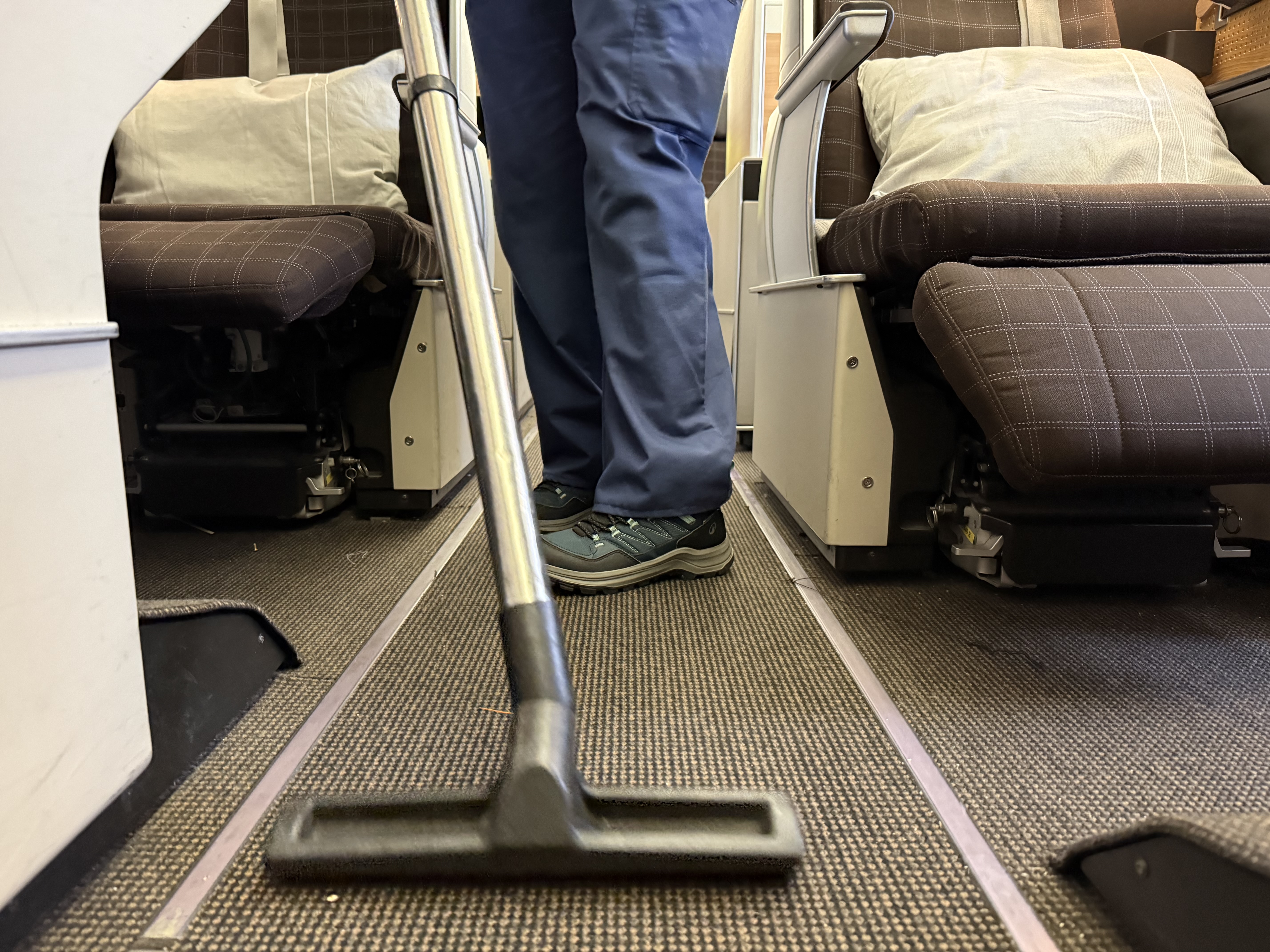 Wer sich schon immer gefragt hat, ob der Teppich im Flugzeug gereinigt wird: ja – er wird gründlich gesaugt.