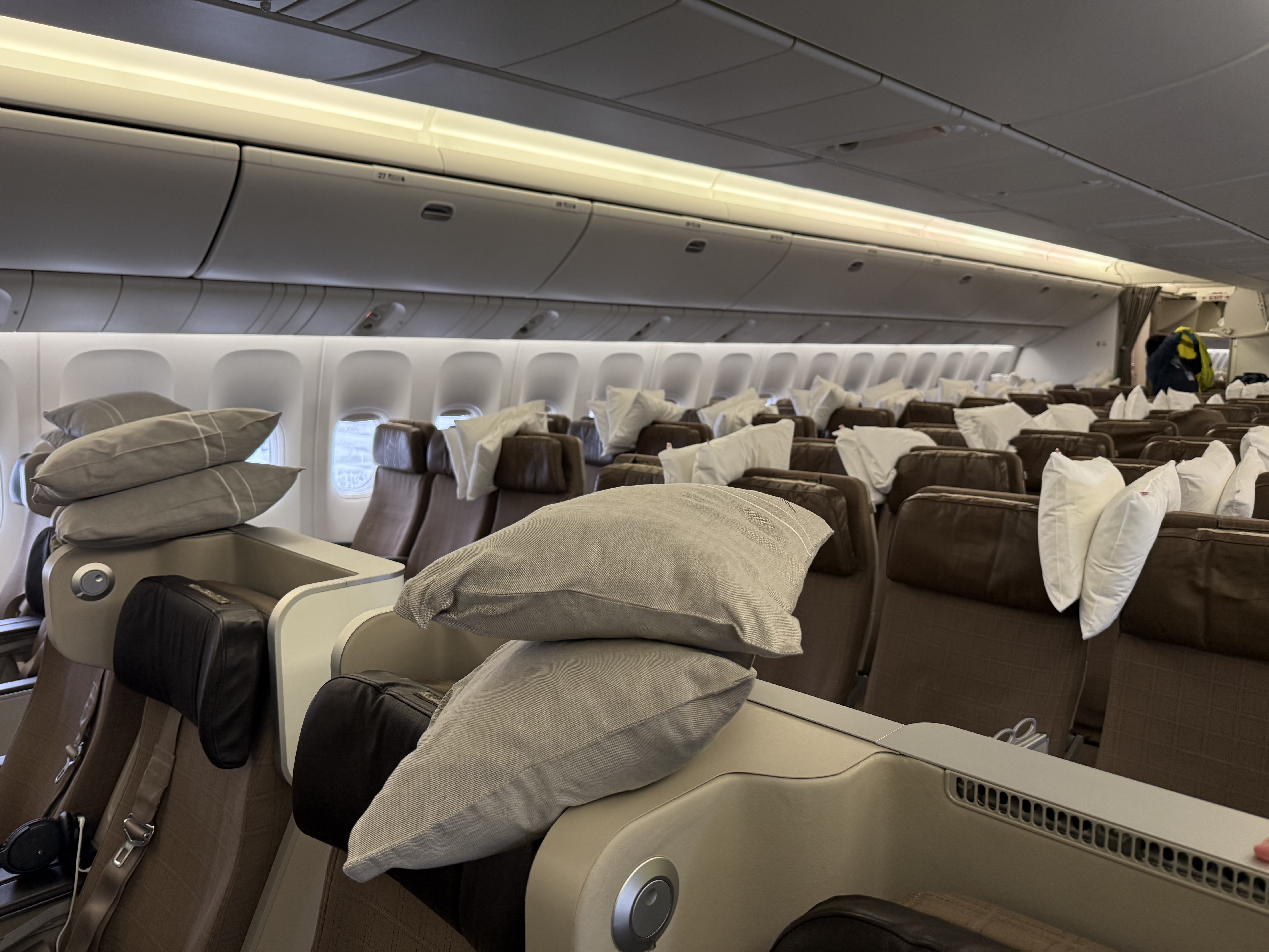 Die acht Sitze in der First Class bringen zusätzliche Ablageflächen, mehr Elemente im Sitzbereich und umfangreicheres Service-Equipment – das erfordert mehr Zeit und Aufmerksamkeit.