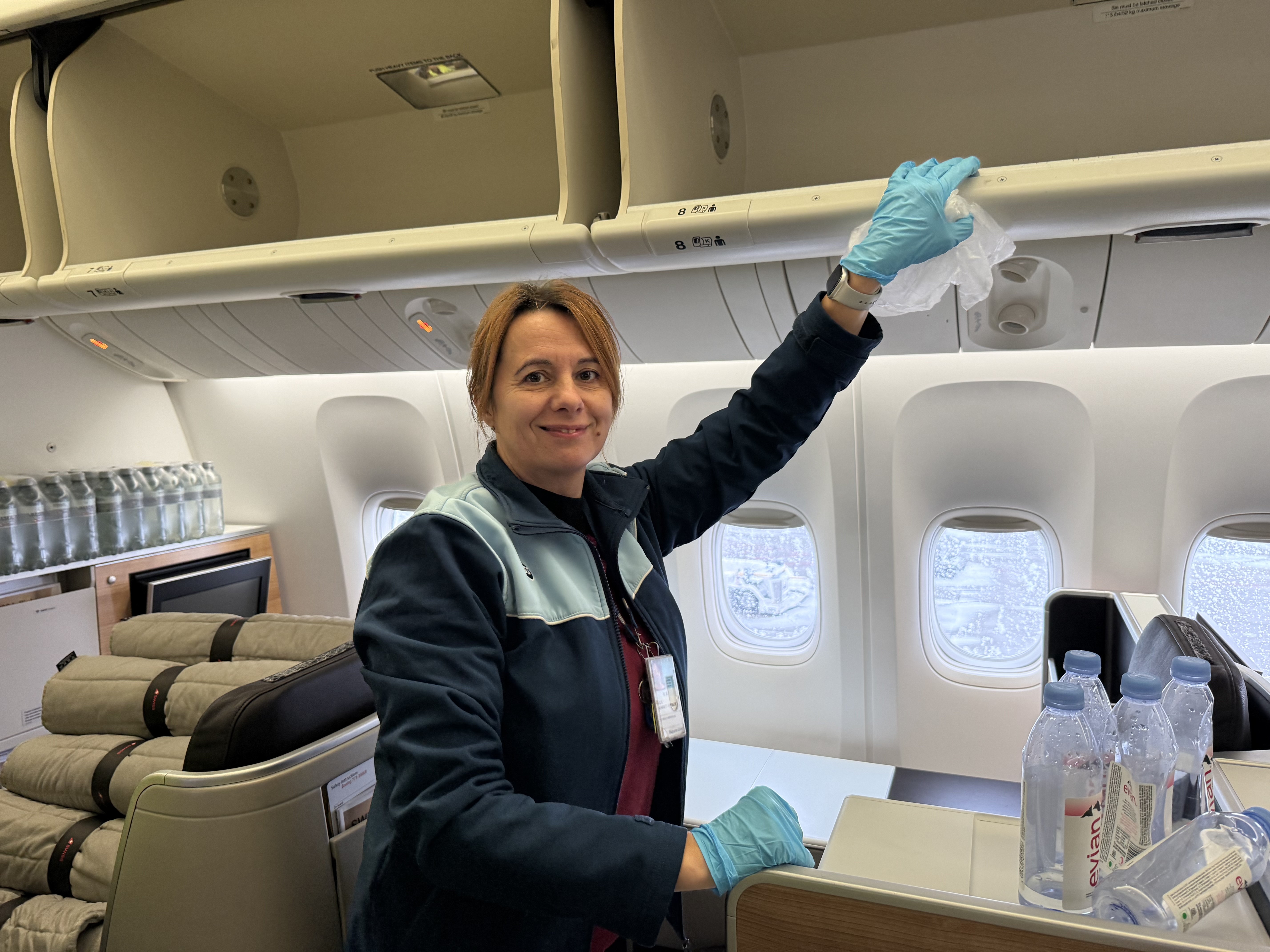 Die Reinigungsstandards selbst sind jedoch in allen Kabinenbereichen hoch und sie sind klar definiert. «Wir orientieren uns immer an den Vorgaben der Airlines, an der verfügbaren Zeit und am jeweiligen Kabinenlayout», erklärt Sporn. Entscheidend sei, dass die Qualität stimmt – unabhängig von der Reiseklasse. Unterschiede ergeben sich daher weniger aus unterschiedlichen Ansprüchen, sondern vor allem aus der Komplexität der jeweiligen Kabine.