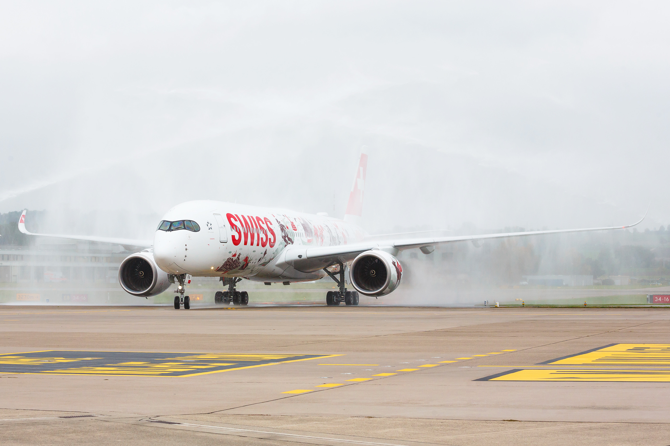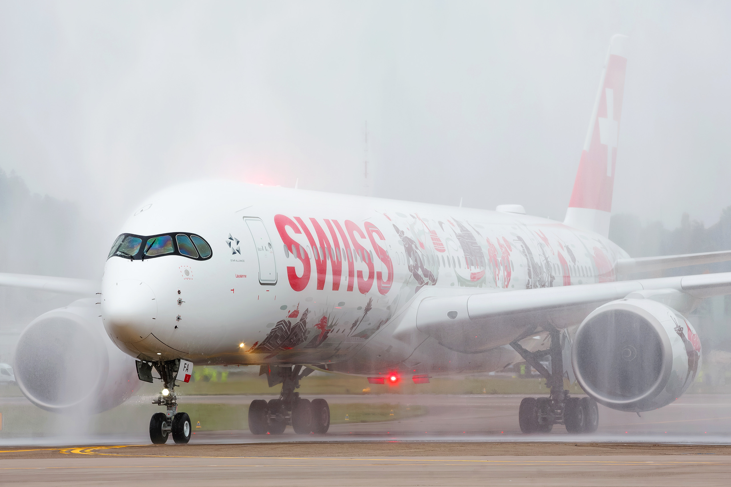Swiss feiert: Die Ankunft des ersten Airbus A350 in Zürich