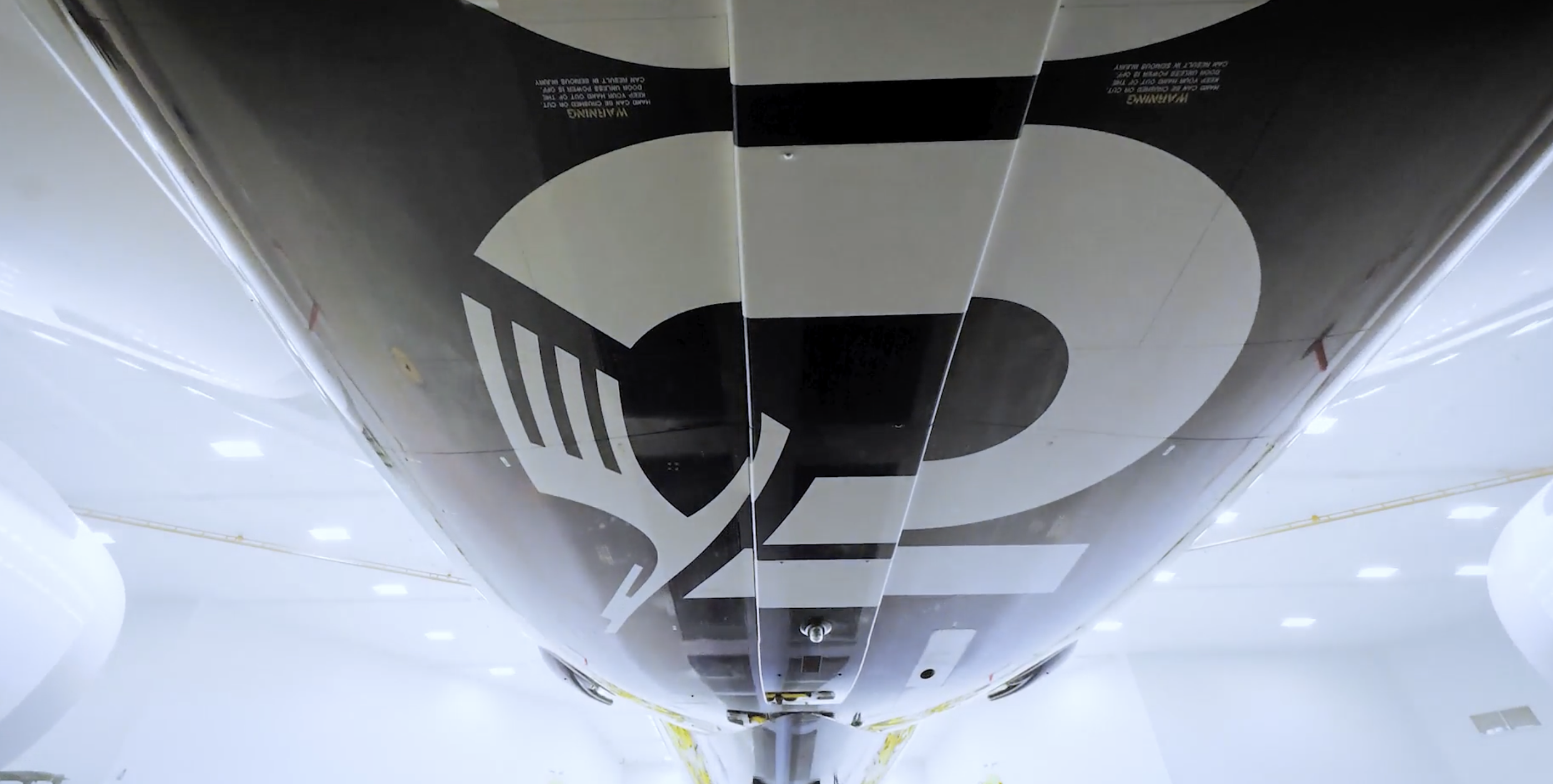 Auch die Unterseite des Dreamliners trägt die Zahl 100 sowie einen kleineren Kranich.