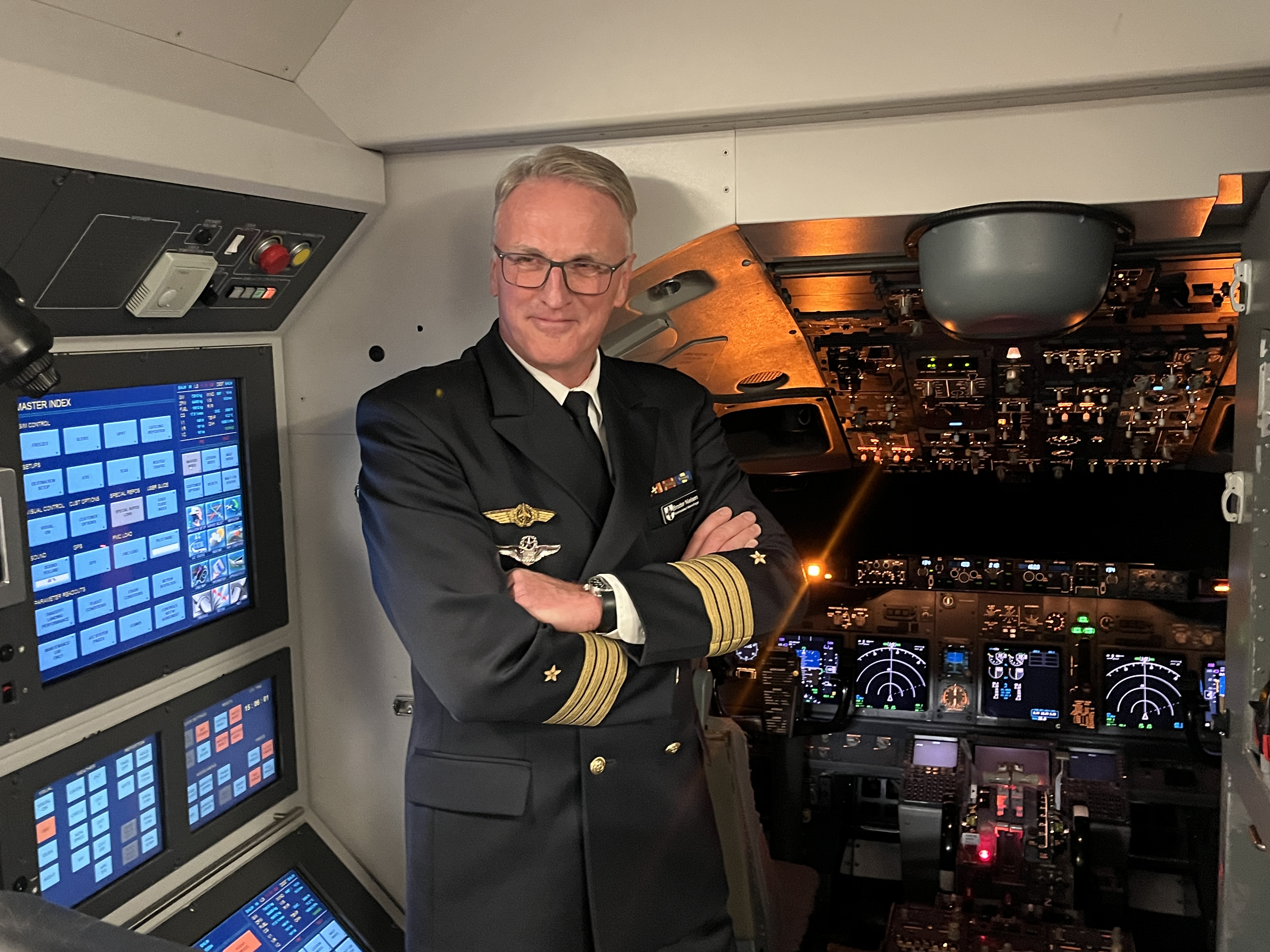 Broder Nielsen, Kommandeur des Marinefliegergeschwaders, im Boeing-737-800-Simulator bei LAT in Berlin. aeroTELEGRAPH