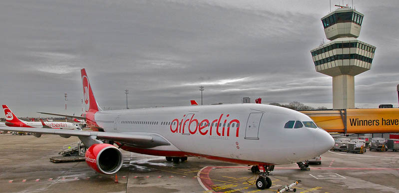 Airbus A330 von Air Berlin in Berlin-Tegel 2011: Die damals zweitgrößte Fluglinie Deutschlands flog bereits im neuen Design umher. Der Flughafen Berlin-Tegel bekam mit der Verspätung des BER eine Galgenfrist, die zu einer harten Bewährungsprobe wurde. Der Stadtflughafen wurde einst für 2,5 Millionen Passagiere pro Jahr gebaut. 2011 verzeichnete er bereits annähernd 17 Millionen Passagiere pro Jahr. 2019 überstieg diese Zahl 24 Millionen.