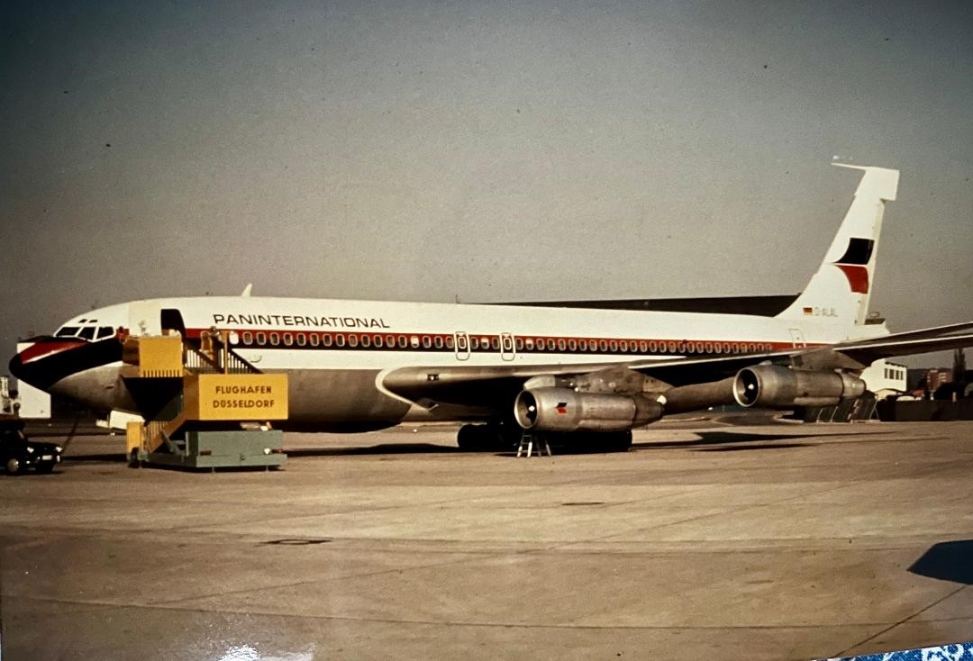 Boeing 707 von Paninternational: Die Airline setzte auch zwei Exemplare des Vierstrahlers ein, die sie gebraucht von American Airlines übernahm, Düsseldorf spielte dabei im Streckennetz eine große Rolle. aeroTELEGRAPH