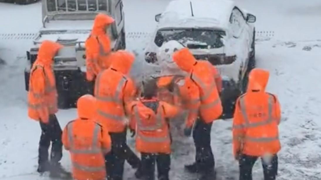 Trotz der harten Arbeit auf dem Vorfeld war zumindest am Montag die Laune von Mitarbeitenden des Bodenabfertigers Viggo nicht am Boden. Ein Video zeigt, wie einige von ihnen in der Nähe des Terminals einen Schneemann bauen und ihm eine Weste anziehen.