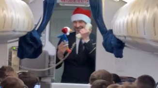 Sowohl der Plüsch-Kranich als auch der Flugbegleiter trugen Weihnachtsmützen. Was wohl zuallererst für die Kinder an Bord bestimmt war, begeisterte auch die Erwachsenen, von denen viele den kleinen Auftritt filmten. Mittlerweile verbreitet sich das Video in etlichen Sozialen Netzwerken und findet viel Beifall von Kommentatorinnen und Kommentatoren.