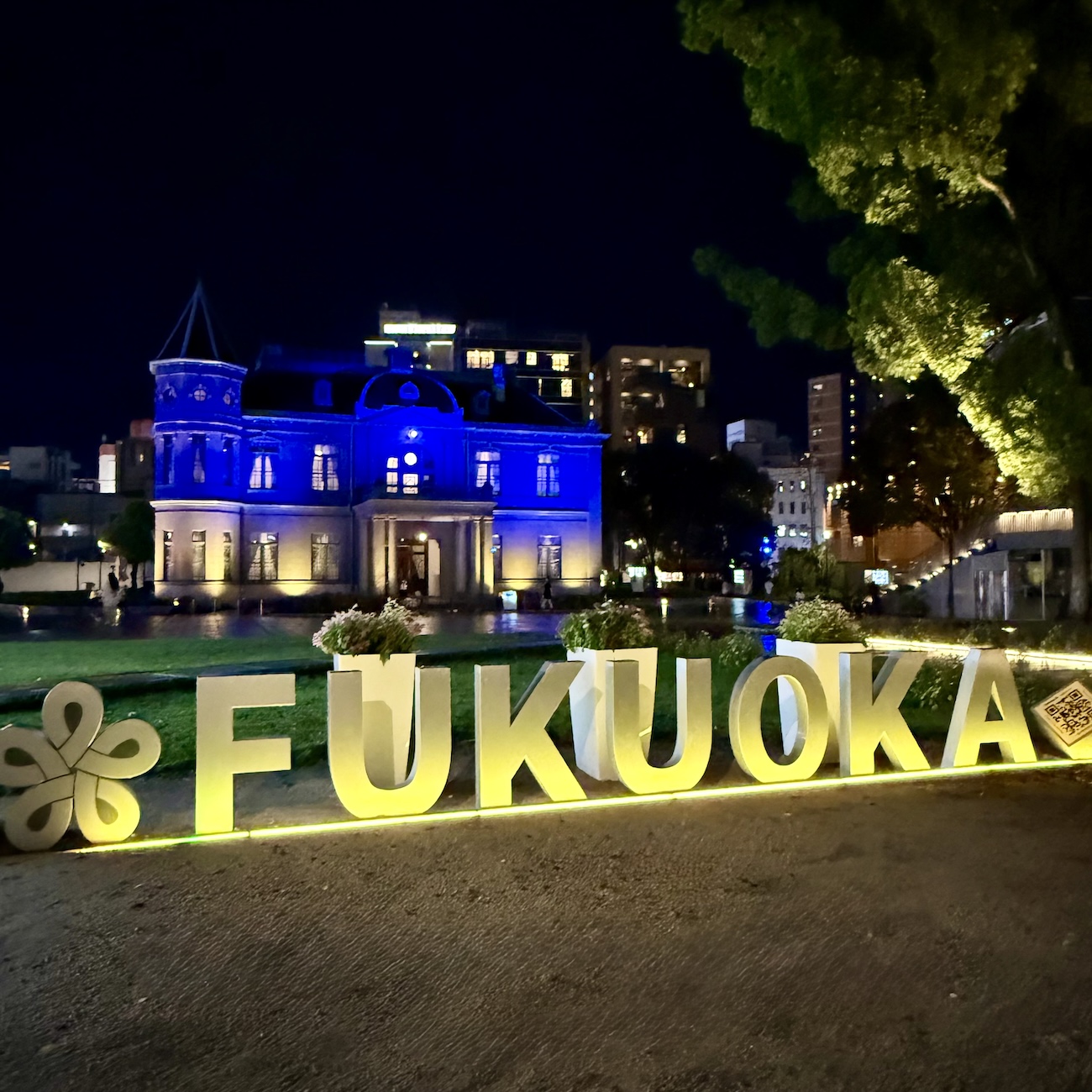 Fukuoka Logo nachts am Fluss Peter Pfänder