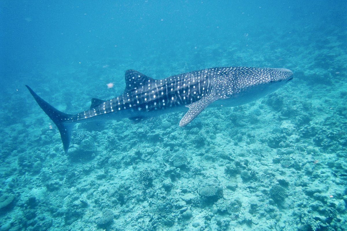Mantas wirken wie Wesen aus einer vergangenen Zeit. Seit 400 Millionen Jahren gibt es diese Fische, die, auch wenn man es ihrem «fliegenden» Verhalten nicht unbedingt ansieht, mit Haien verwandt sind. Ein Hai, dem man das eher ansieht, steht am nächsten Tag auf unserem Programm. Der größte Fisch der Weltmeere, der bis zu zwölf Meter lange Walhai, ist ohnehin der noch größere Star rund um Dhigurah und Maafushivaru. Das Besondere: Im vergleichsweise seichten Wasser sind die sanften Meeresriesen das ganze Jahr über hier recht verlässlich anzutreffen.