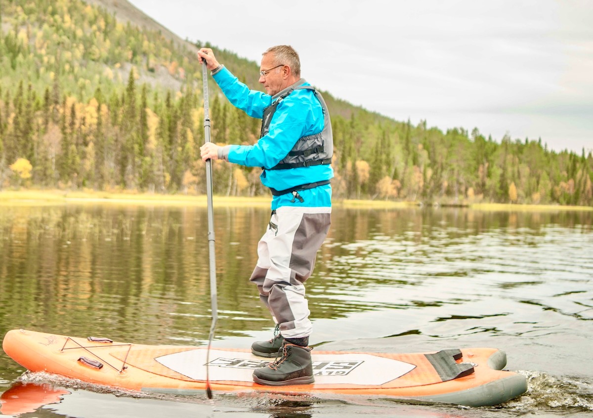 Stand-up-Paddeln auf dem Käsenkijoki ist für Geübte ein ausgesprochen entspanntes Vergnügen. Der Fluss ist seicht und von hohem Schilf gesäumt. Er fließt sehr langsam vor sich hin, vom Varkaankari-See zum Äkäslompolo-See. Ersterer ist ein reizvolles SUP-Revier, das man vor der Flusspartie erkunden sollte.