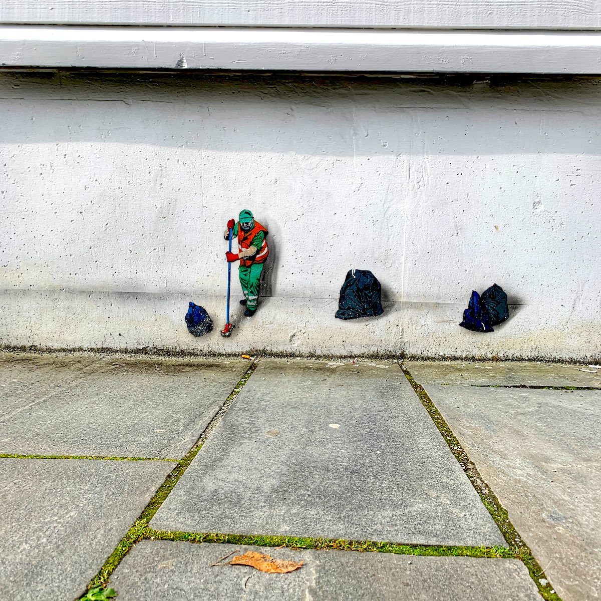 Die geistreichen Miniaturen des belgischen Stencil-Künstlers Jaune sind nicht leicht zu finden, aber umso lohnender. Im Rahmen der Nuart-Festivals hat er sich immer wieder mit handgroßen Motiven von Straßenarbeitern in Warnwesten verewigt – für ihn die «Helden des Alltags», die unsere Städte in Bewegung halten.