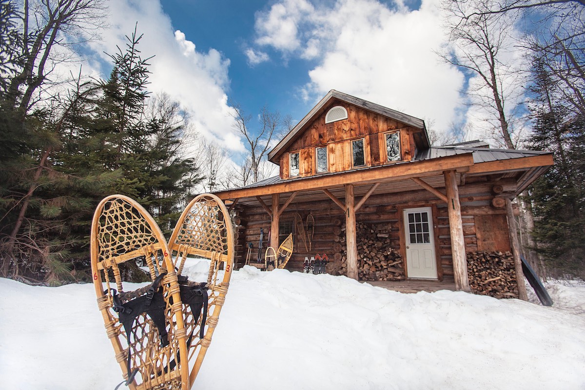 Winterabenteuer: Das Blockhaus Algonquin Log Cabin verfügt über sechs Doppelzimmer, die sich zwei Bäder (mit Waschbecken und Toilette) teilen. Ausserdem gibt es in einem separaten Gebäude eine Sauna mit Dusche. Drei Tage/zwei Nächte inkl. Verpflegung sowie geführte Touren: rund 480 Franken (plus Steuern) pro Person, www.voyageurquest.com